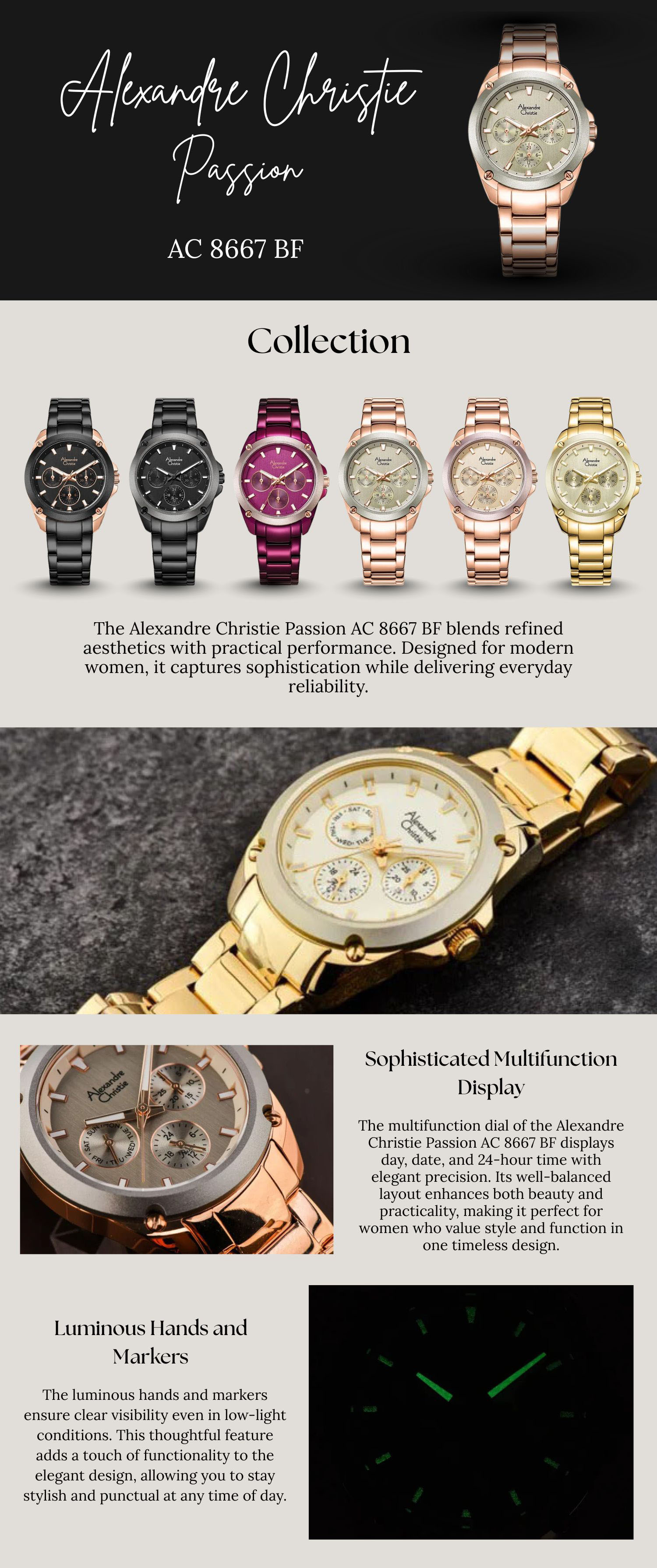Temukan keindahan sekaligus keandalan Alexandre Christie Passion AC 8667 BF hanya di Jamtangan.com dan rasakan pesonanya yang memancarkan gaya elegan di setiap kesempatan.