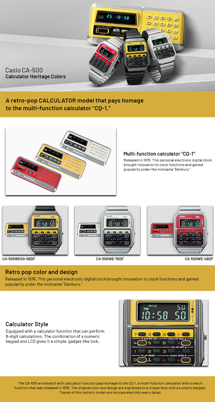 Tampil gaya dengan nuansa vintage yang penuh warna. Check out Casio CA-500WE-7BDF Vintage Calculator Heritage Color dengan harga terbaik hanya di Jamtangan.com!
