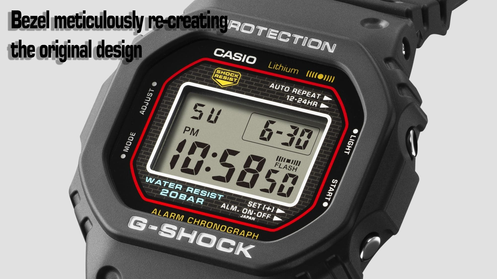 ✅ Menghidupkan kembali DW-5000C yang legendaris dengan tampilan LCD retro dan aksen merah khas G-SHOCK pertama.