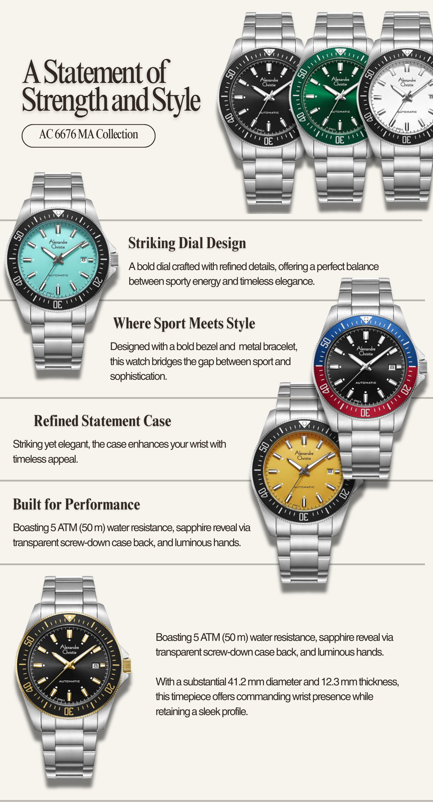 Dengan desain analog minimalis, frame stainless steel kokoh, dan mesin otomatis, koleksi ini ideal untuk kamu yang mengutamakan tampilan sporty-elegan.