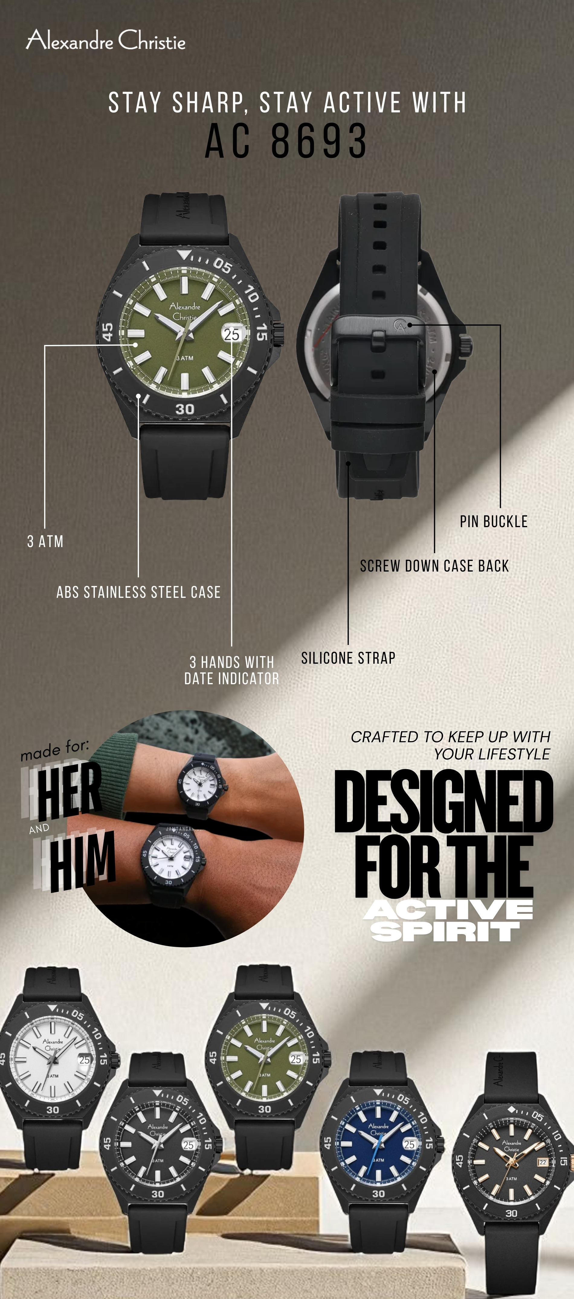 ✅ Desain Sporty & Modern Dengan strap karet hitam, jam tangan ini menghadirkan tampilan sporty yang modern sekaligus bikin percaya diri setiap hari.