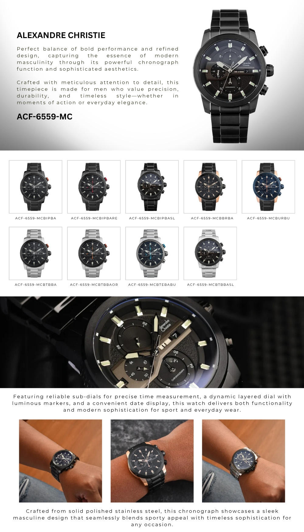 Dengan perpaduan fungsi dan tampilan bergaya modern, ACF-6559-MCBIPBA menjadi pilihan tepat bagi mereka yang menginginkan jam tangan bold tanpa meninggalkan sisi stylish.