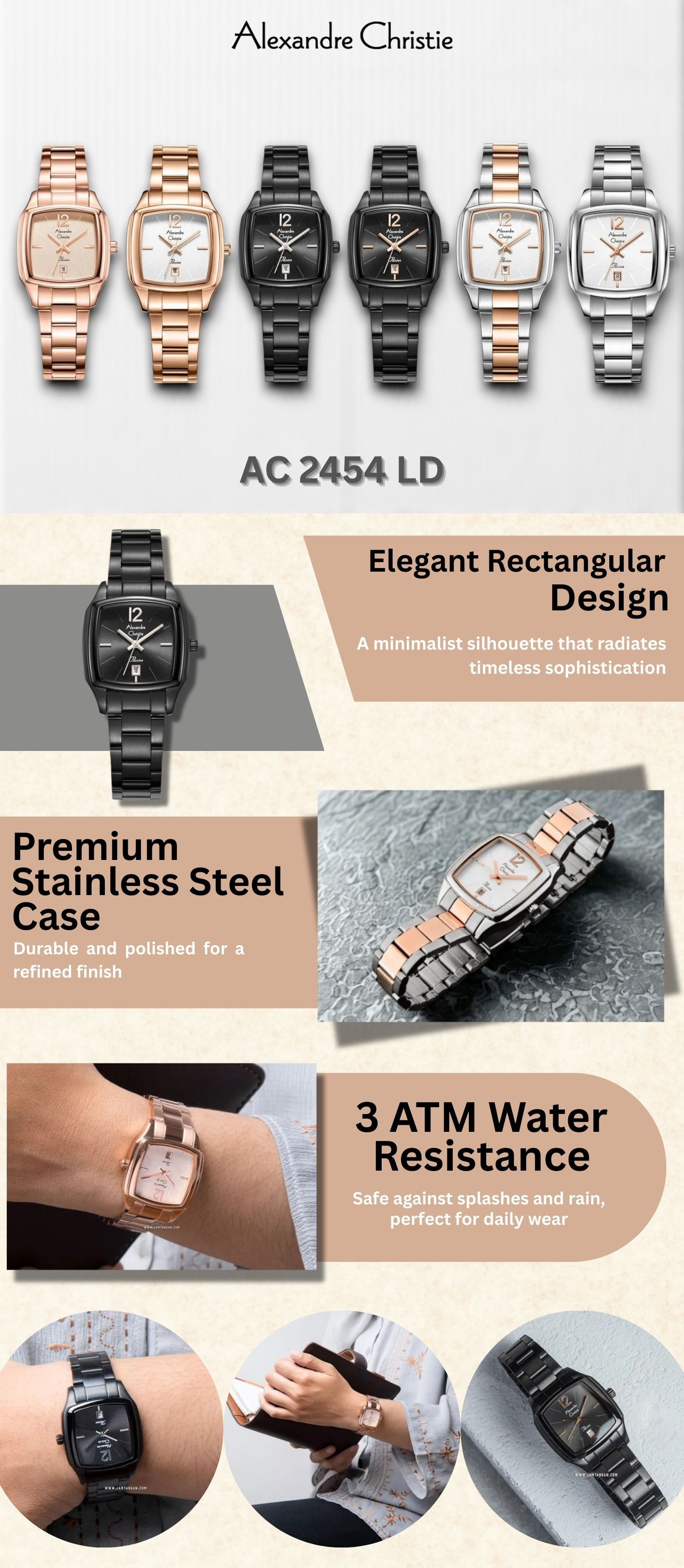 Alexandre Christie AC 2454 LD adalah jam tangan feminin yang elegan dengan sentuhan desain klasik dan build solid. Tampilan dirancang untuk tampil anggun sekaligus tahan lama. Sempurna sebagai pelengkap gaya harianmu.