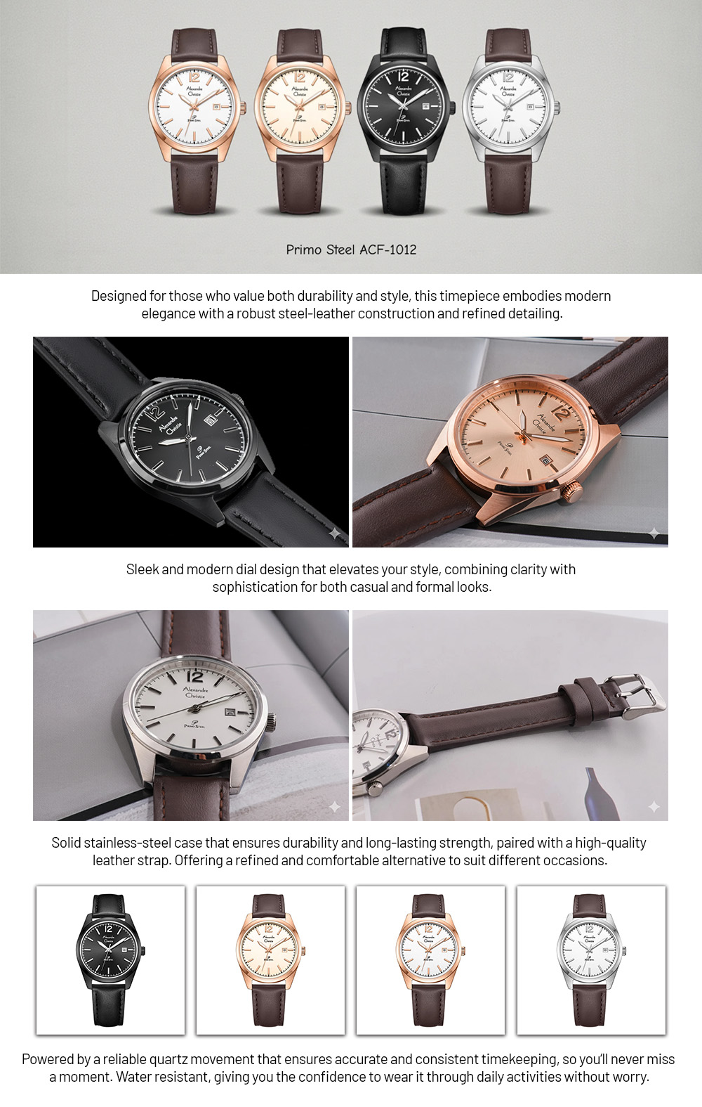 Ketangguhan berpadu dengan kesan elegan dalam Alexandre Christie Primo Steel. Menghadirkan sentuhan modern dengan konstruksi stainless steel-leather. Sempurna untuk penggunaan sehari-hari, koleksi ini mampu menyeimbangkan fungsi dan tampilan klasik yang tak lekang oleh waktu.