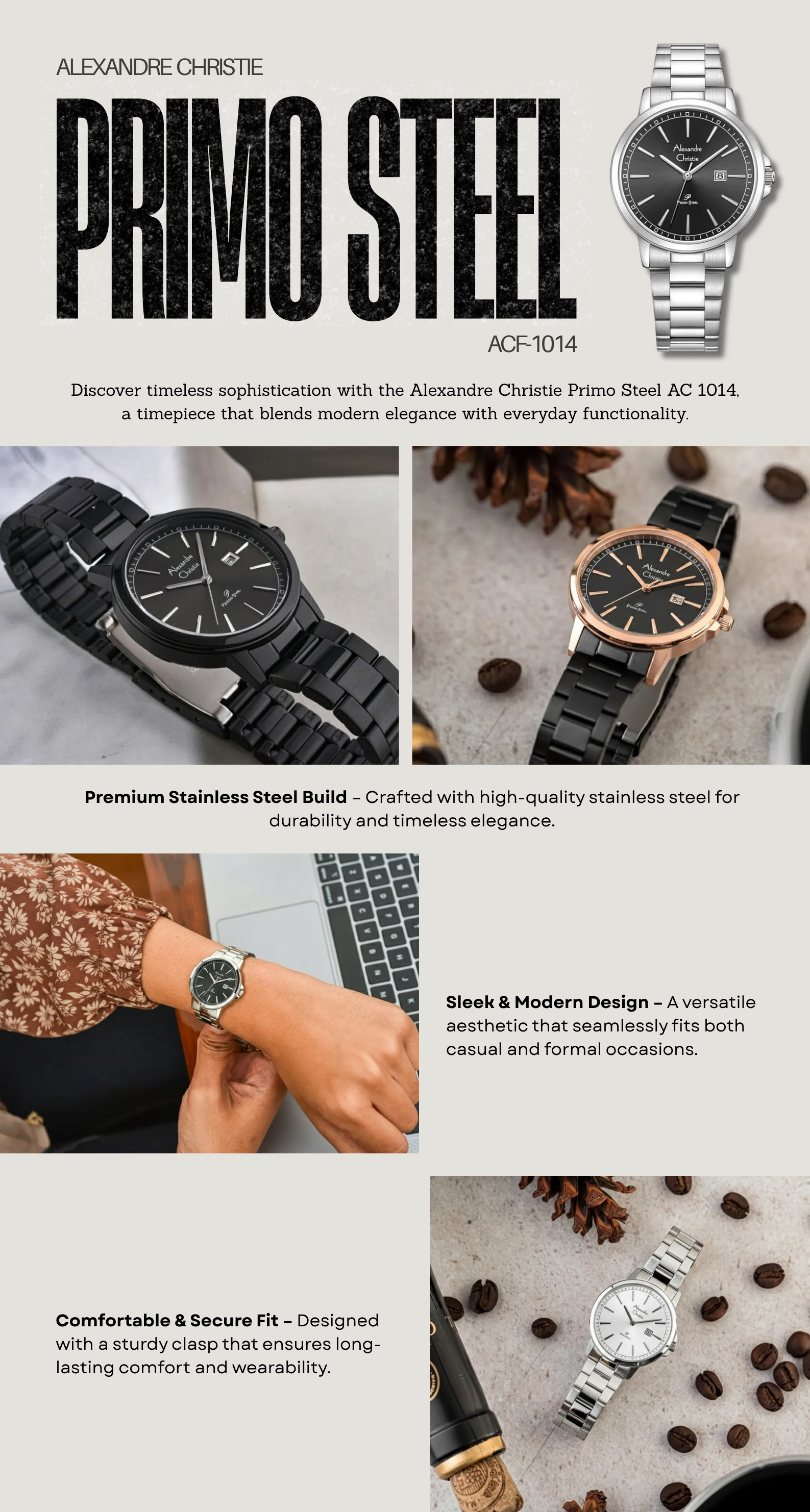 Tingkatkan gaya dengan Alexandre Christie Primo Steel ACF-1014-LDBSSSLBA, perpaduan elegan dan fungsional untuk setiap momen. Check out dengan harga terbaik di Jamtangan.com!