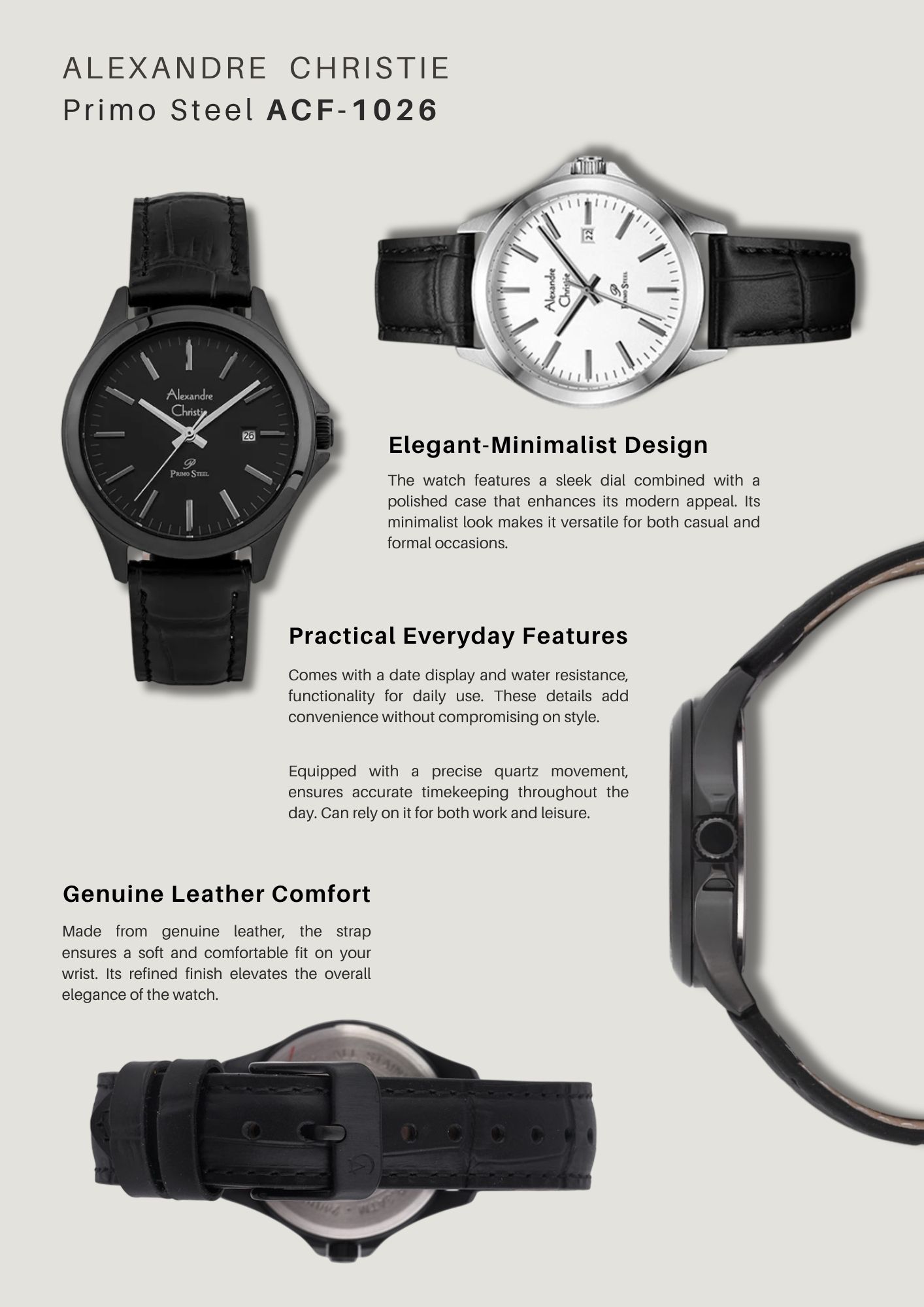 Menawarkan desain versatile-menawan dengan fitur yang fungsional, Alexandre Christie Primo Steel ACF-1026-LDLIPBA adalah sebuah pilihan tepat untuk keseharian.