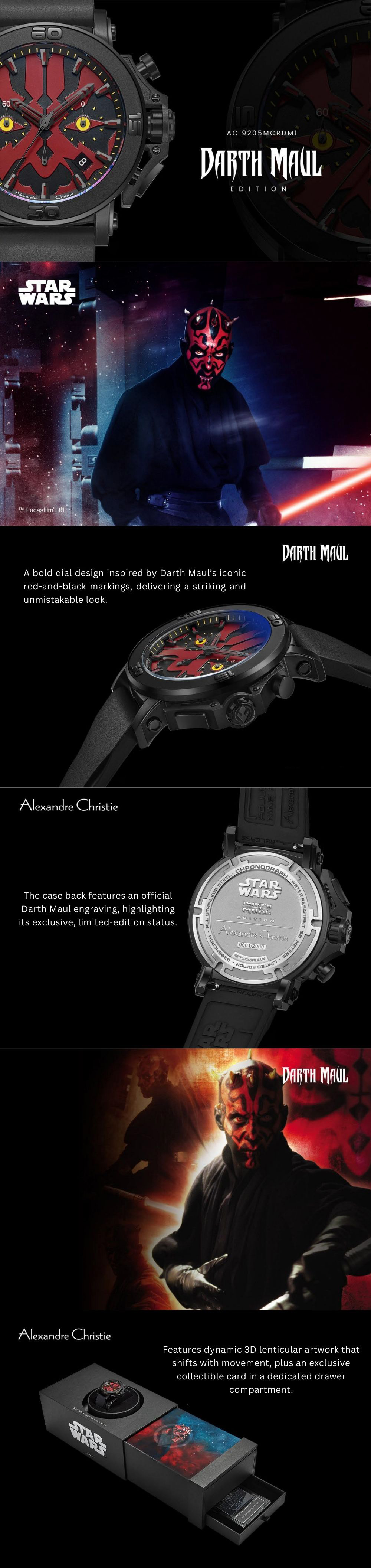 Tampil bold, dark, dan penuh karakter dengan Alexandre Christie X Star Wars ACF-9205-MCRDM-1 Darth Maul Edition. Check out dengan harga terbaik hanya di Jamtangan.com!