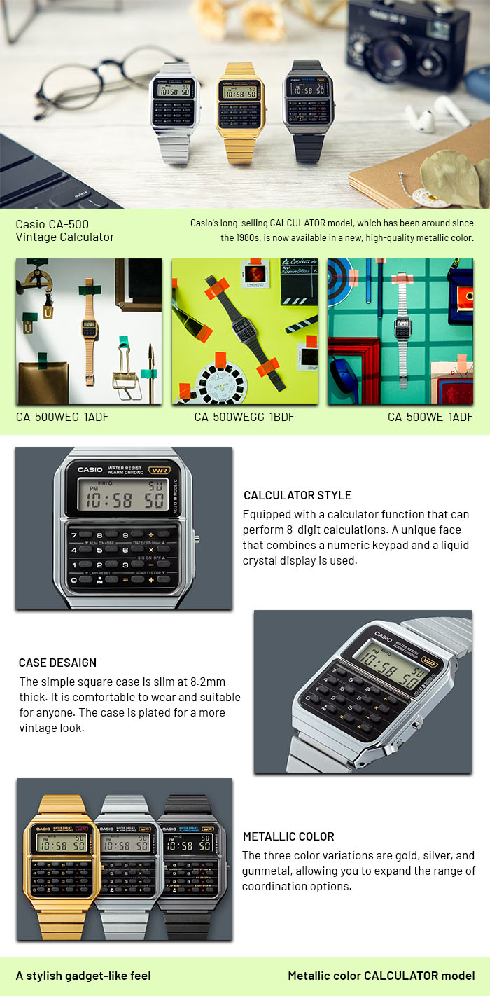 Berikut fitur-fitur unggulan yang bikin Casio CA-500WEGG-1BDF Vintage Calculator ini layak masuk koleksimu:
