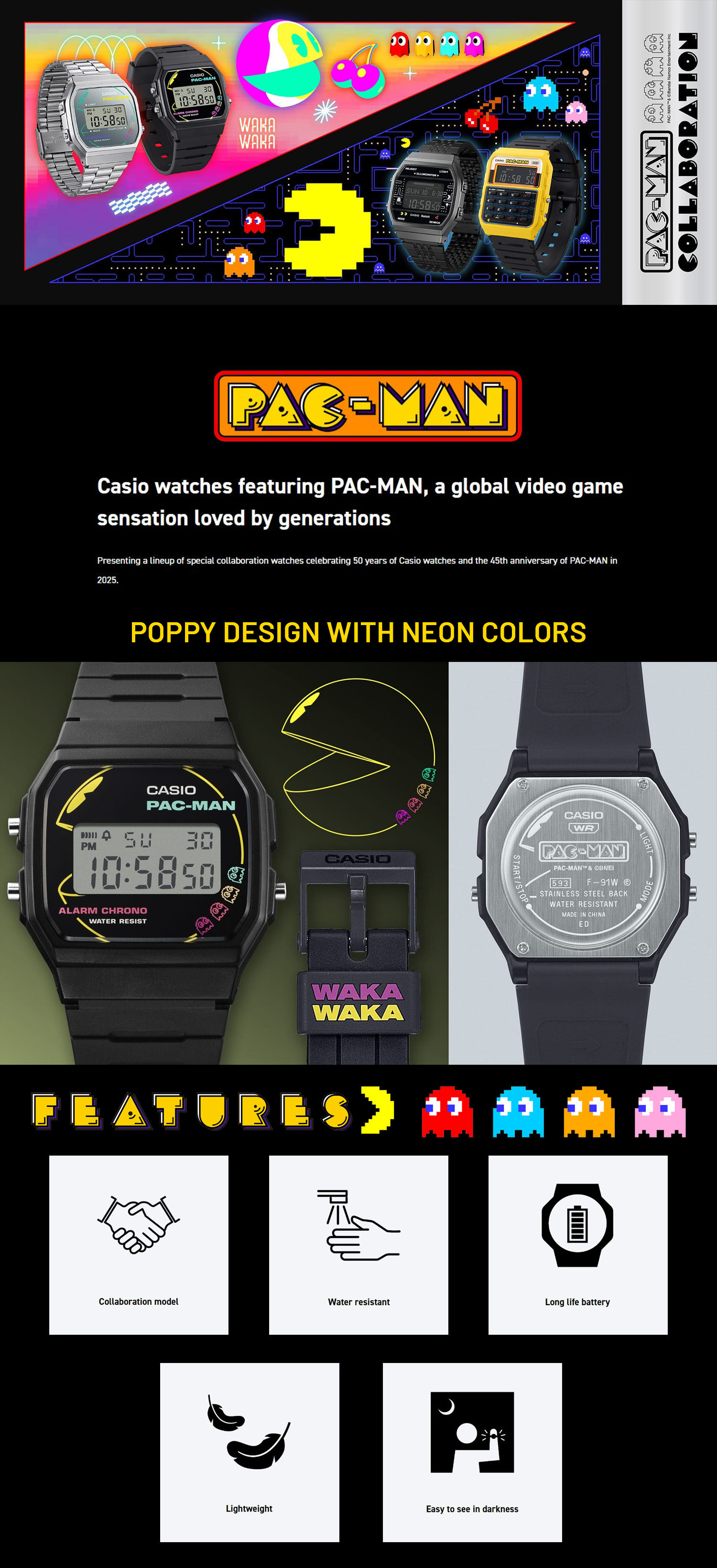 Waktunya upgrade gaya kamu dengan sentuhan retro game yang legendaris! Miliki sekarang juga Casio F-91WPC-1ADR PAC-MAN Collaboration cuma di Jamtangan.com!