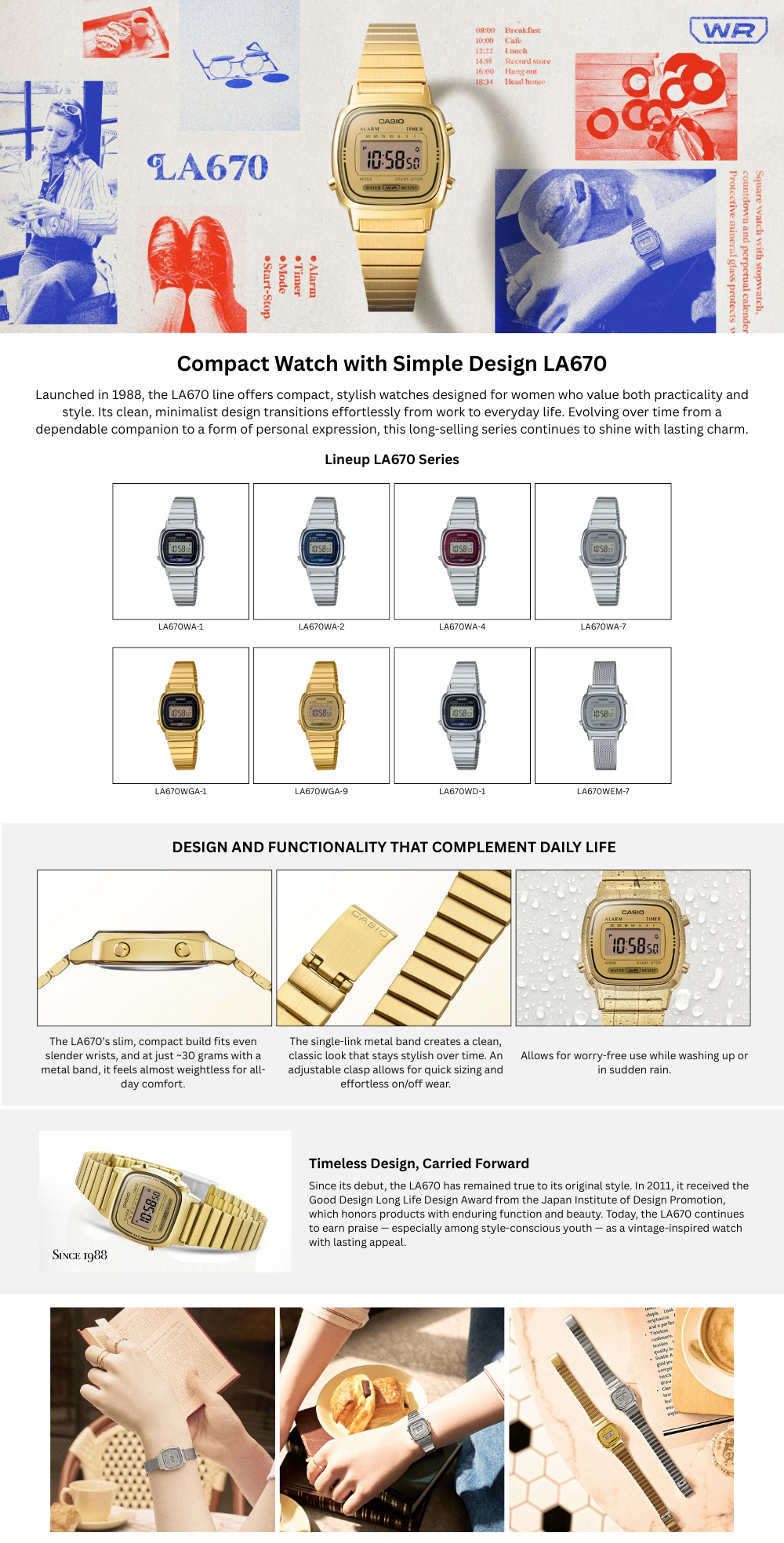 Tambahkan sentuhan retro-minimalis ke keseharianmu bersama Casio General LA670WA-4DF Vintage. Check out dengan harga terbaik hanya di Jamtangan.com!