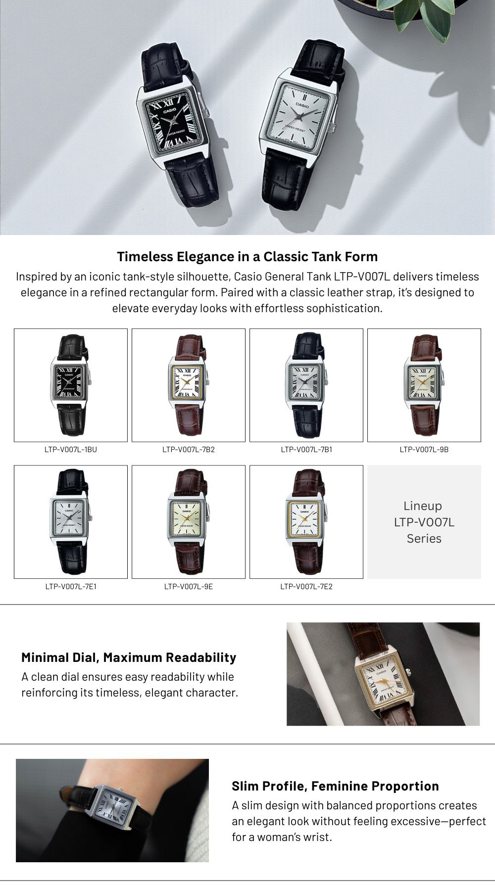 Keunggulan utama yang menjadikan Casio General Tank LTP-V007L pilihan elegan untuk gaya modern wanita: