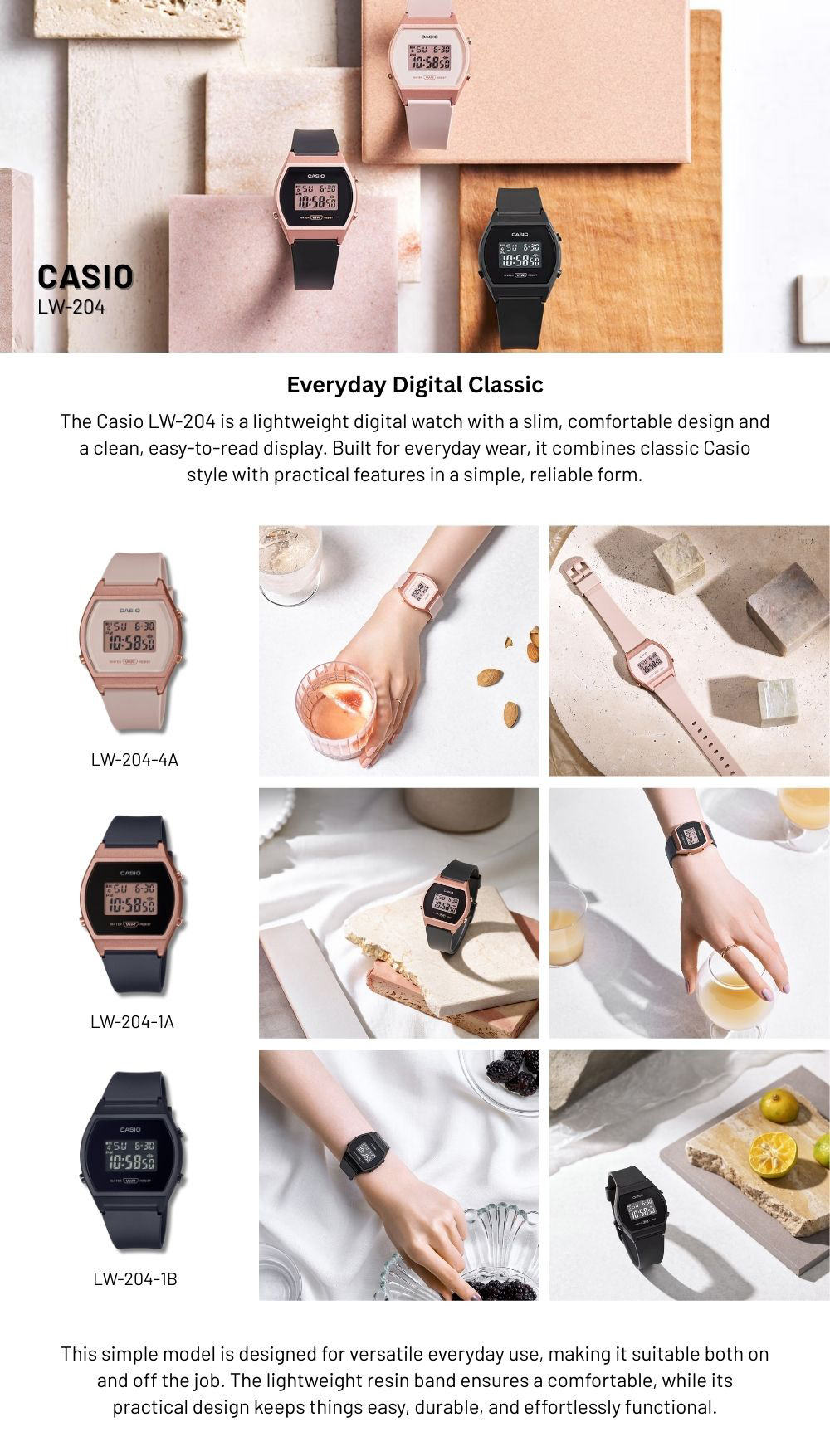 ✅ Casing dan strap resin ringan yang nyaman dipakai seharian.