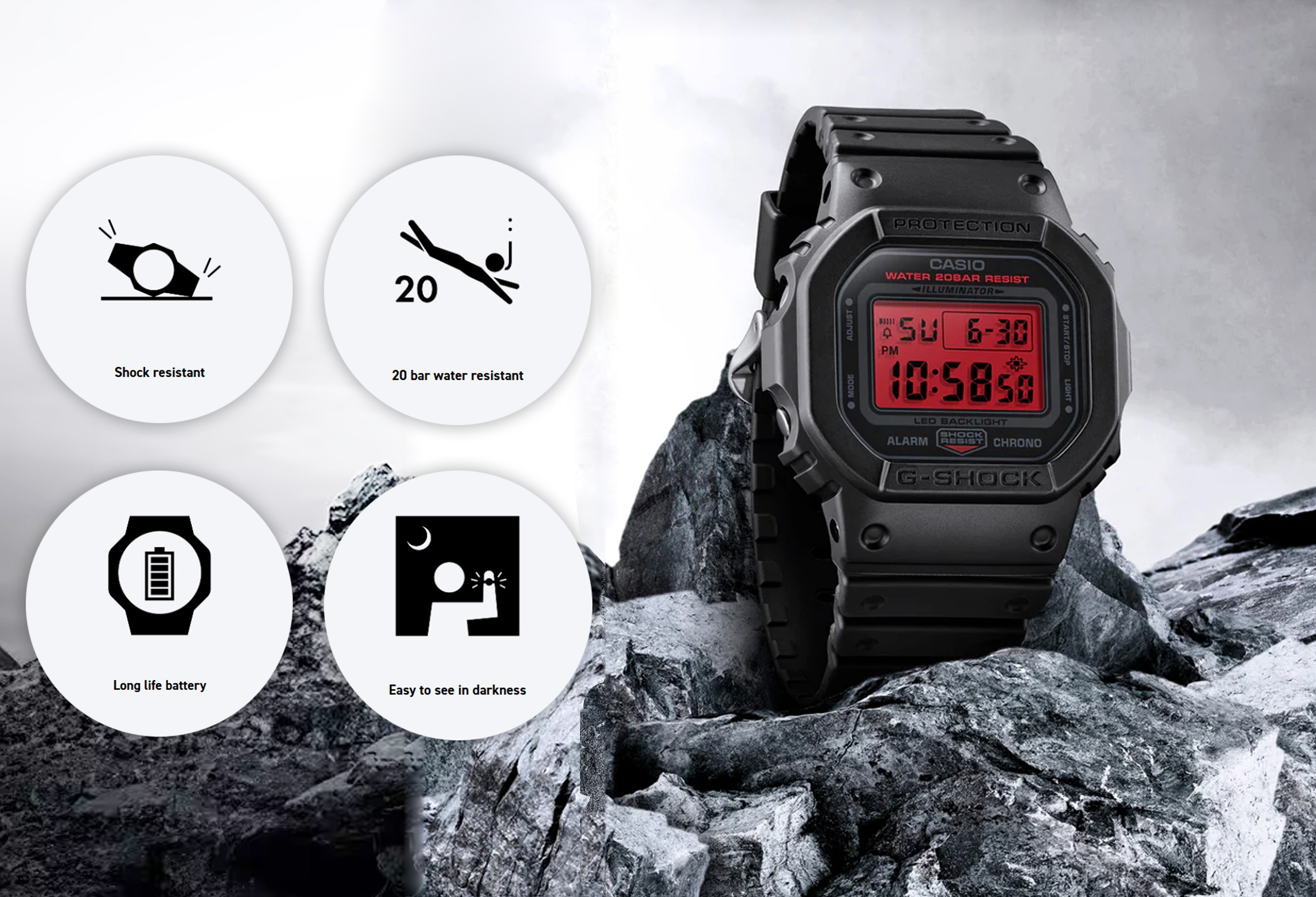 Fitur Unggulan Casio G-Shock DW-5600BBR-1JF Black and Bold Red Series yang Siap Mendukung Gaya Hidup Aktifmu! Apa Saja Sih?