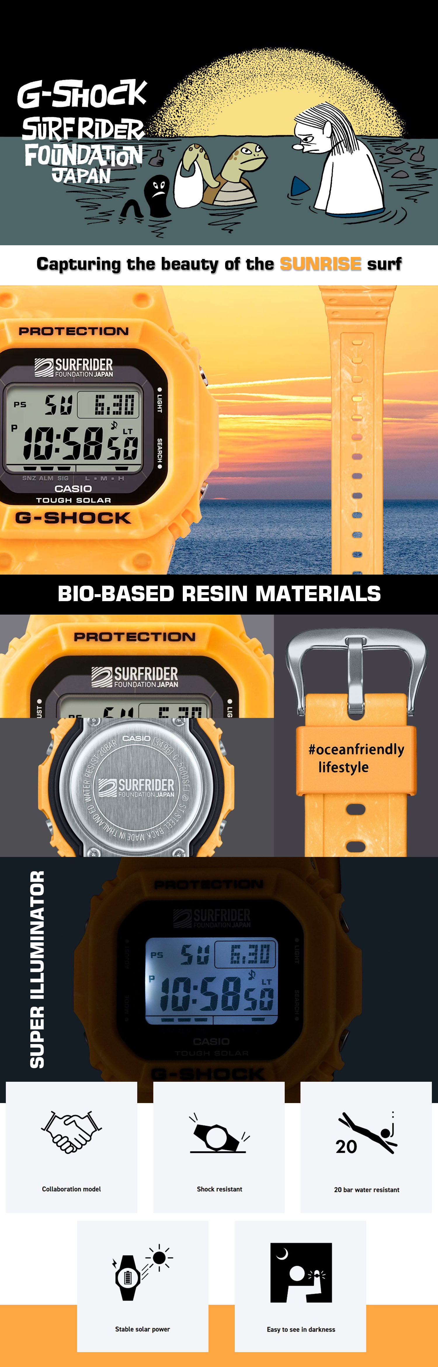 • 1x Casio G-Shock G-5600SFJ-9JR Surfrider Foundation Japan Sunrise Surf Digital Dial Rubber Band (JDM)