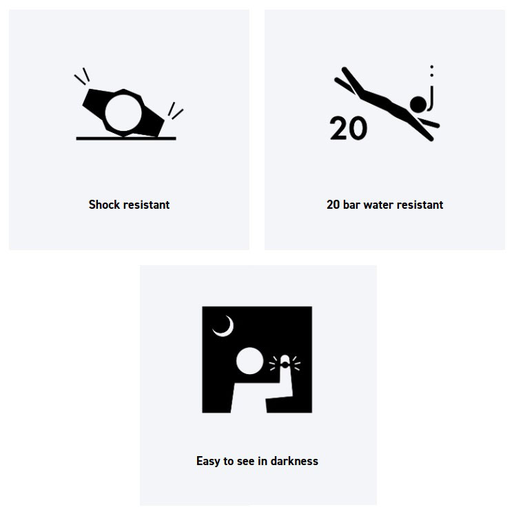 • Auto light switch, selectable illumination duration (1.5 seconds or 3 seconds), afterglow