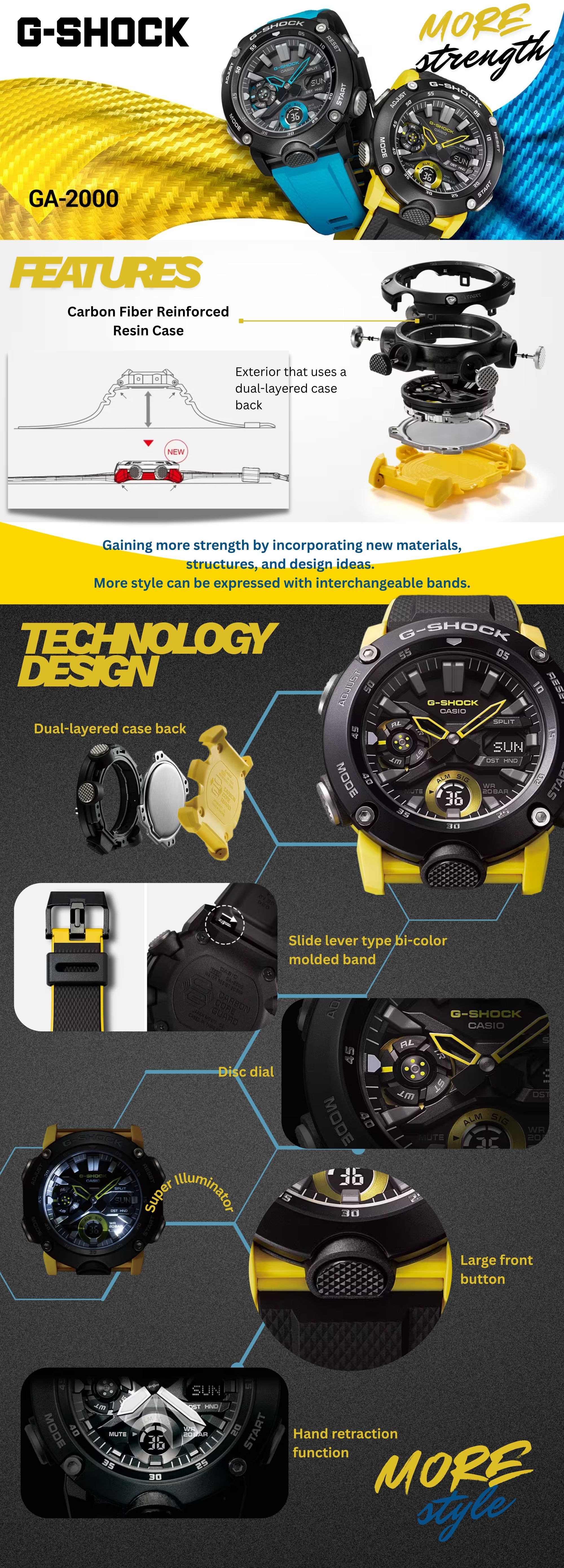 Nggak cuma tampil gagah, G-SHOCK GA-2000 juga dibekali beragam fitur keren yang siap menunjang gaya aktifmu setiap hari. Yuk, cek keunggulannya di bawah ini!