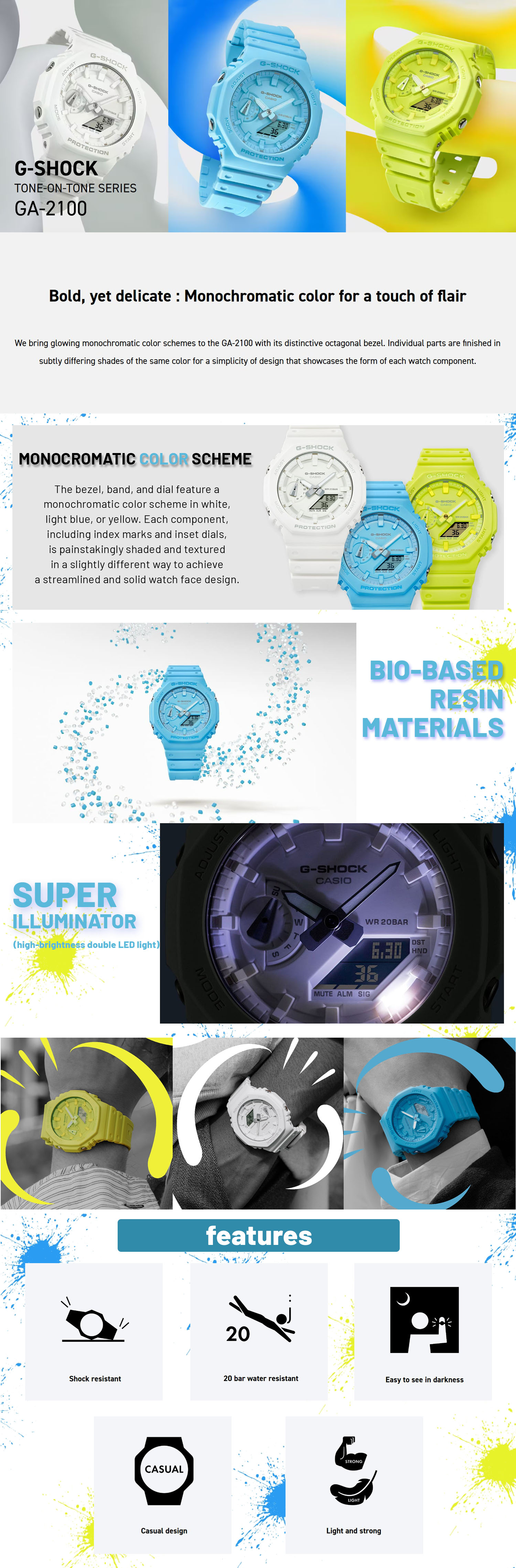 Gaya simpel tapi tetap bold? G-Shock GA-2100-7A7DR Tone On Tone Series jawabannya! Dengan warna putih matte yang keren dan material Carbon Core Guard, jam ini ringan, tangguh, dan pastinya standout!