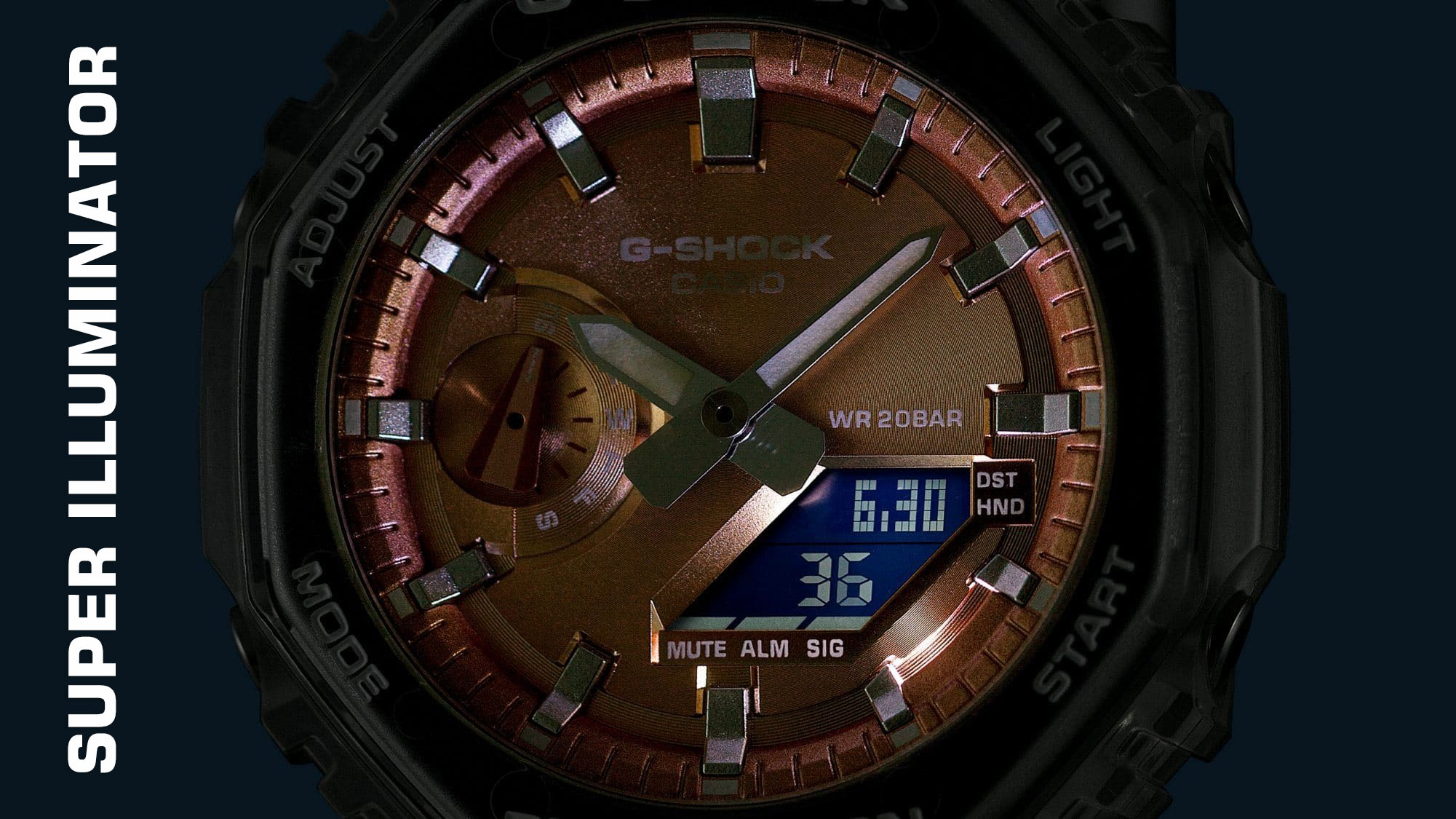 Desain transparan yang edgy, fitur lengkap nan tangguh, dan sentuhan warna metalik yang mencuri perhatian. G-Shock GA-2100BM-7A2JF siap jadi statement di pergelangan tanganmu!