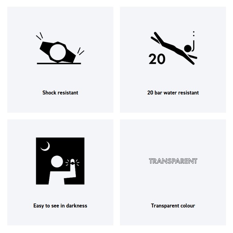 ✅ Material resin transparan pada bezel dan tali memberikan kesan ringan dan nyaman dipakai sepanjang hari.