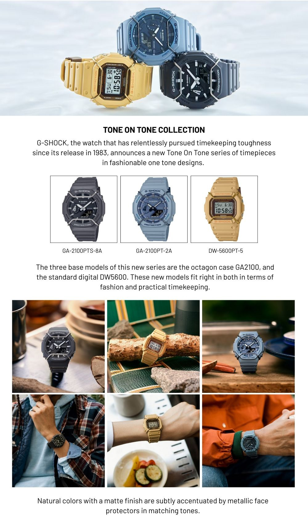 Koleksi G-Shock Tone on Tone menghadirkan gaya monokrom yang stylish dengan satu warna dominan, memadukan estetika yang konsisten dengan ketangguhan legendaris G-Shock dalam desain yang tetap praktis dan fashionable. Mengekspresikan kesan visual yang bold namun minimalis.