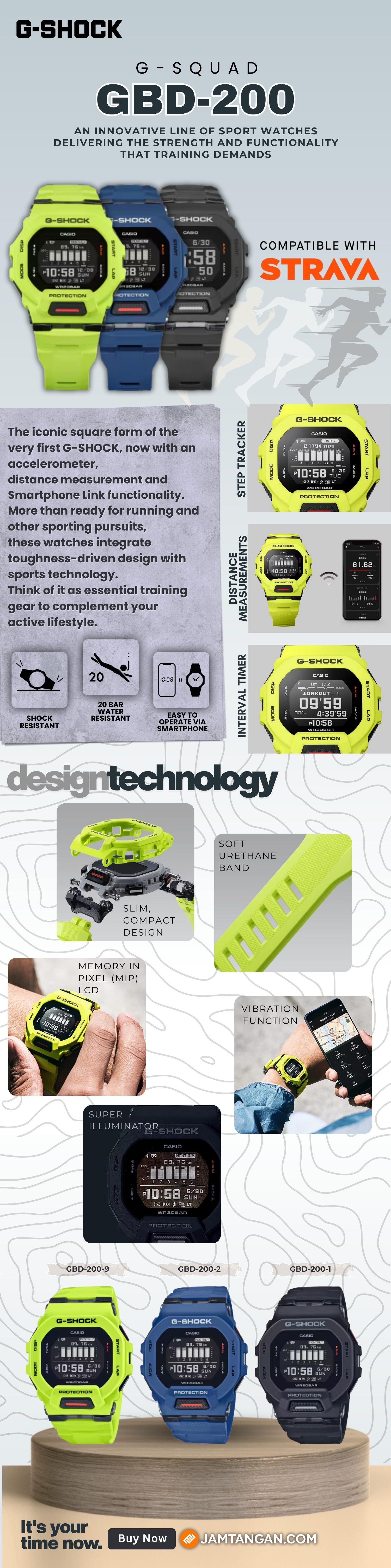 Beraktivitas setiap harinya lebih semangat dengan Casio G-Shock G-Squad GBD-200-9JF terlaris di Jamtangan.com!