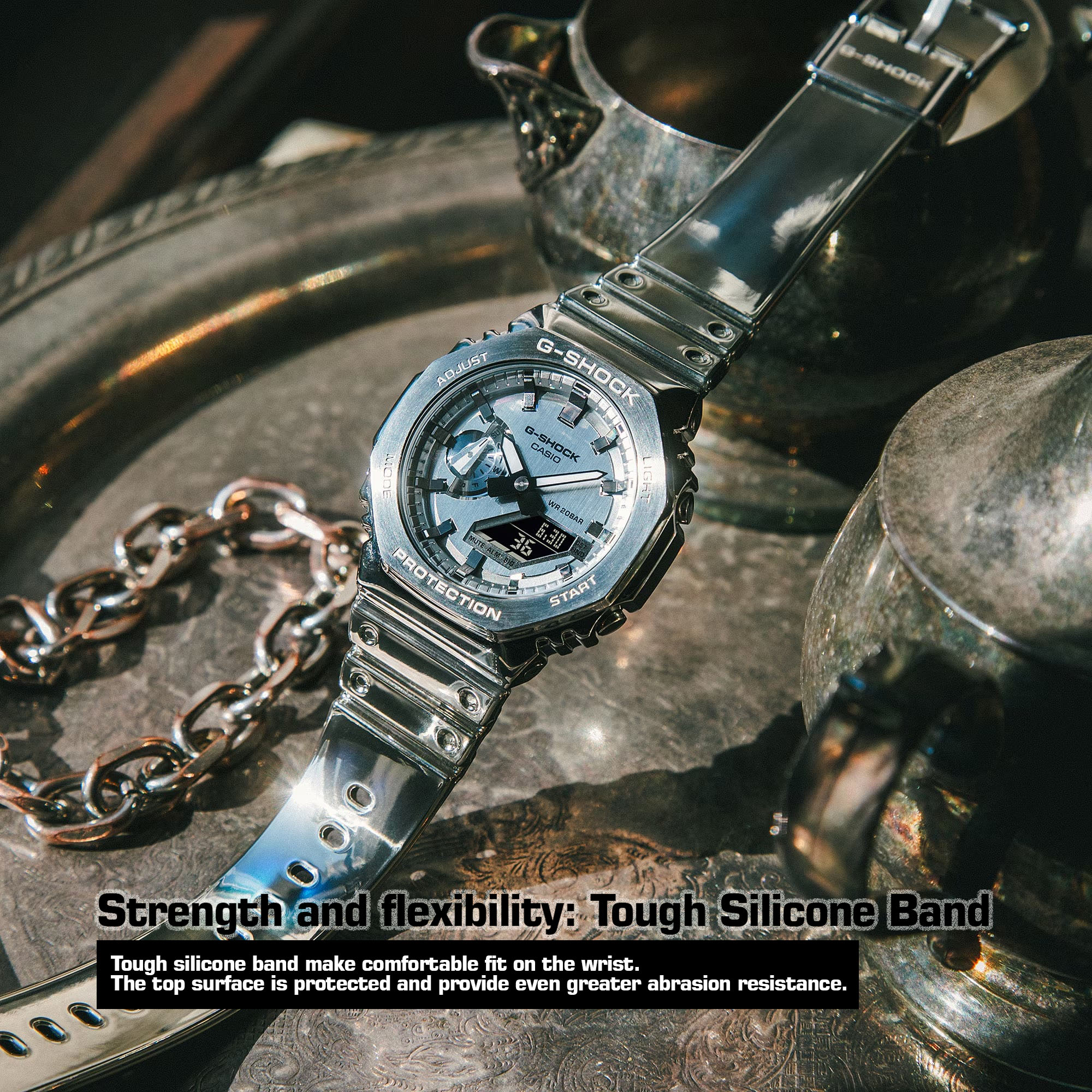 Kombinasi desain ikonik dan fitur canggih adalah hal yang akan kamu dapatkan saat memiliki G-Shock GM-2100YM-8AJF ini: