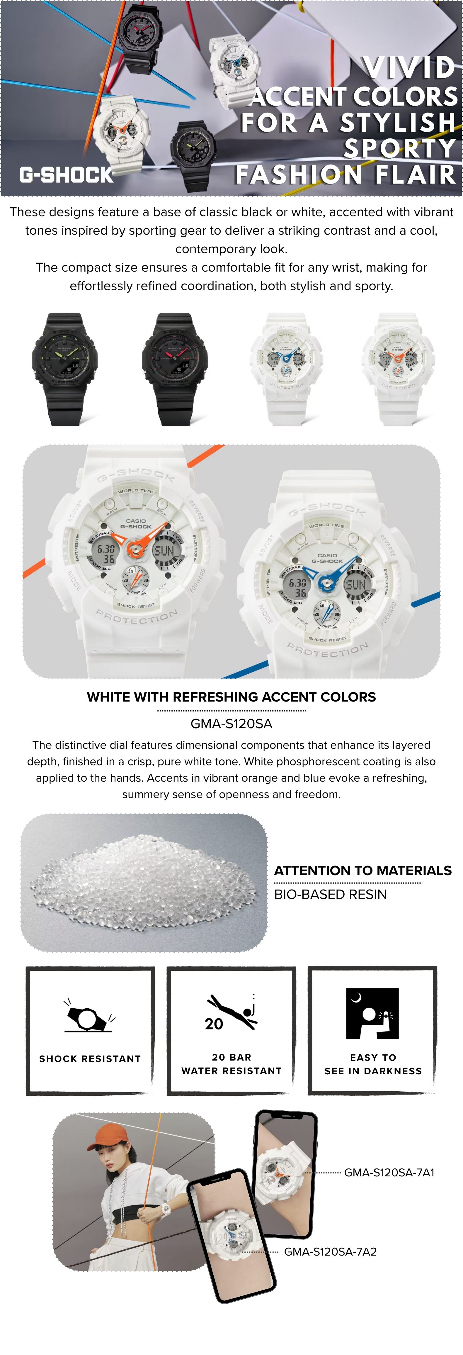 • 1x Casio G-Shock GMA-S120SA-7A2JF All White Digital Analog Dial White Resin Band (JDM)