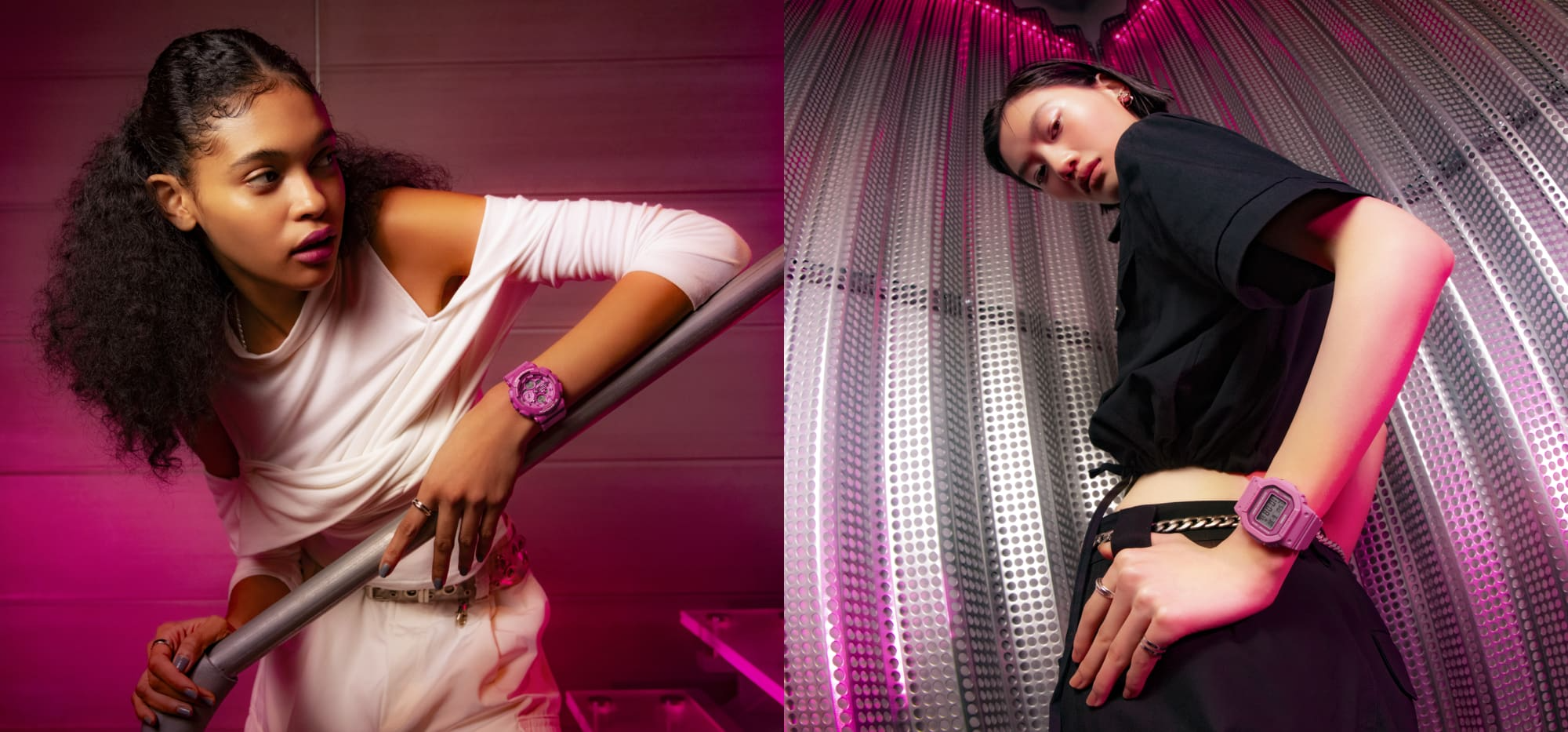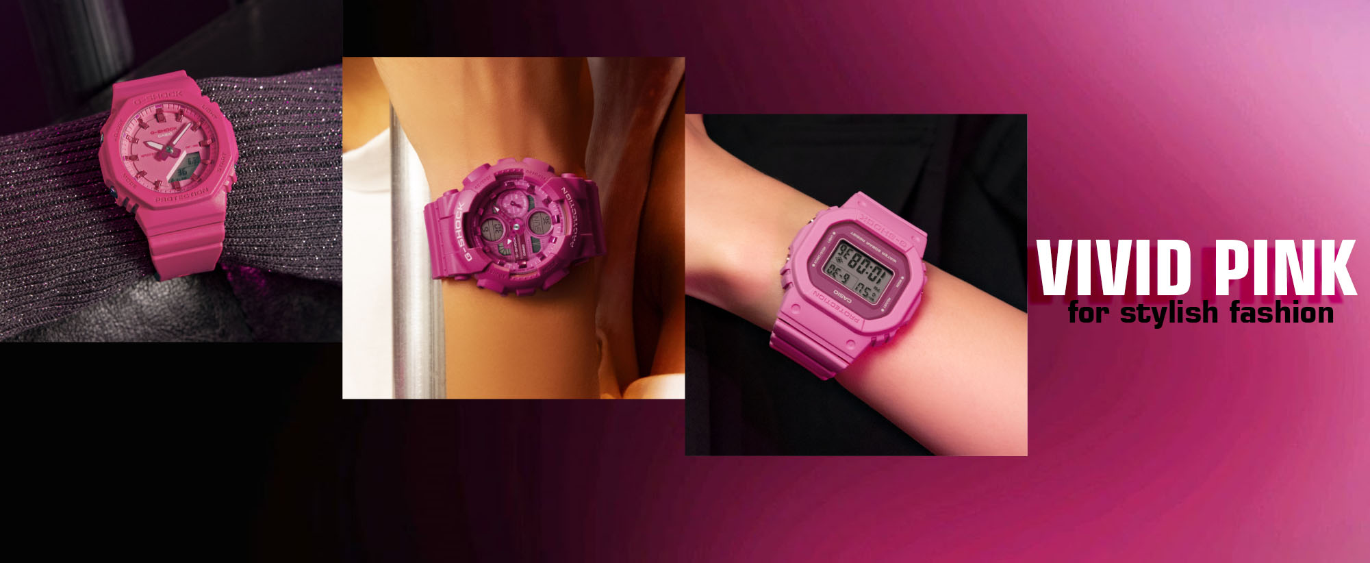 ✅ Warna pink cerah dengan finishing matte dan kontras dial pink tua yang memberi tampilan unik & energik.