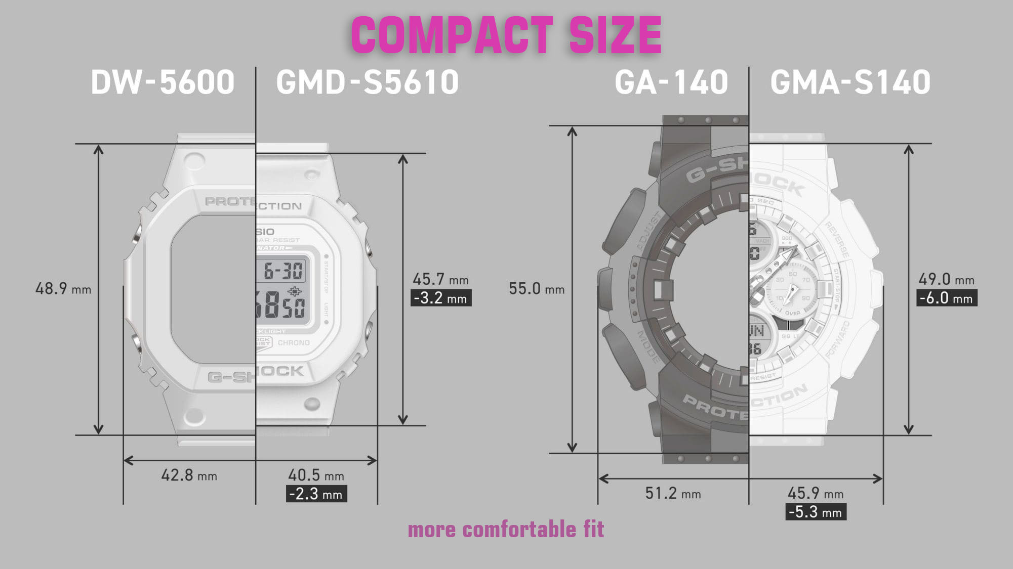 ✅ Desain square klasik G-Shock dalam versi lebih kecil dan ramping—cocok untuk pergelangan tangan wanita atau pengguna yang menyukai jam compact.
