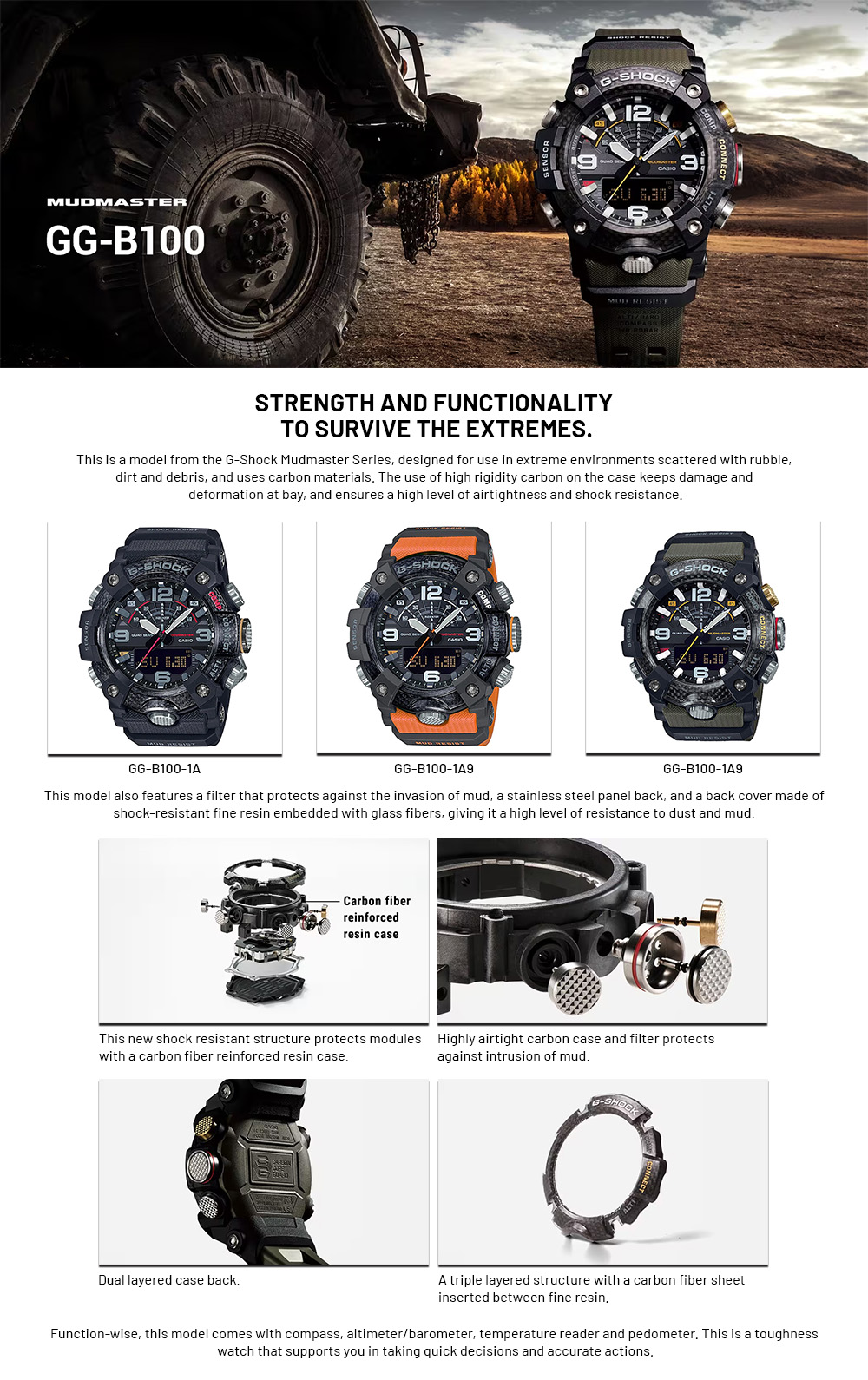 Bukan hanya sekadar jam tangan G-Shock Mudmaster GG-B100-1A9JF adalah tools andalan untuk bertahan,dan bersinar di lingkungan ekstrem. Check out hanya di Jamtangan.com!