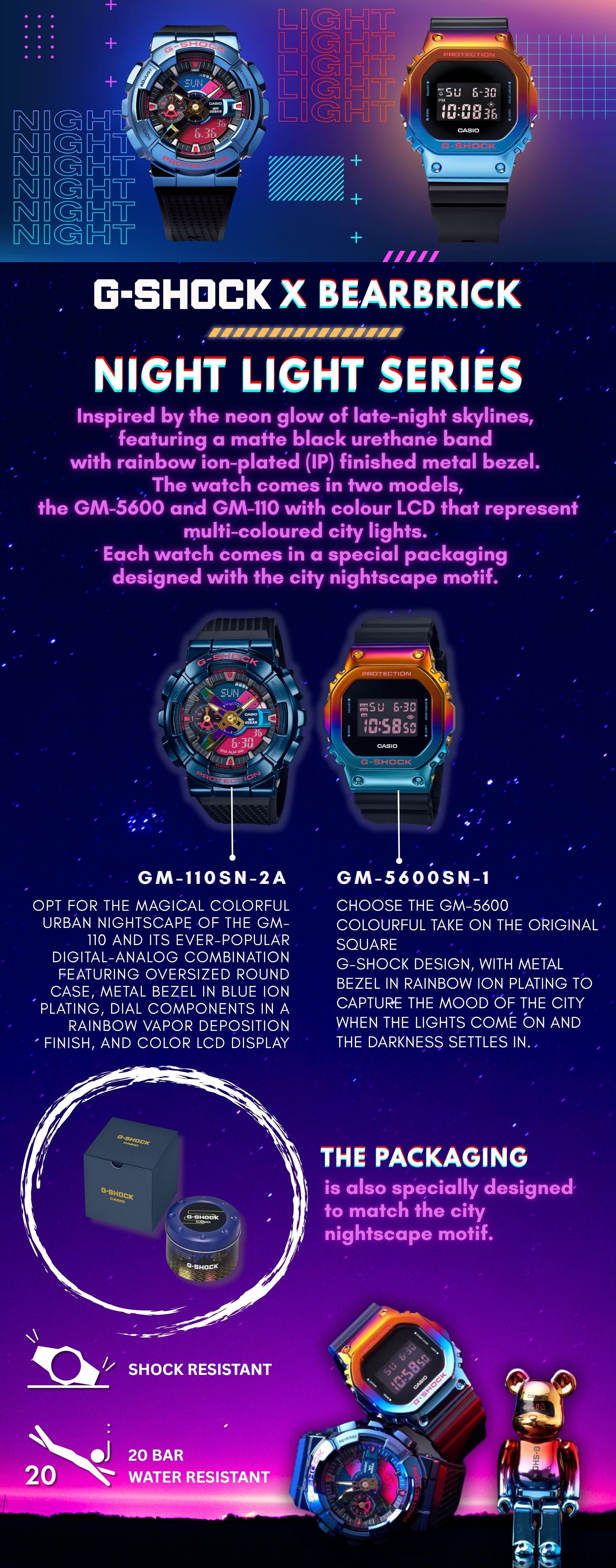 • 1x Casio G-Shock X Bearbrick GM-5600SN-1PFS Shanghai Night Series Black Resin Band Limited Edition