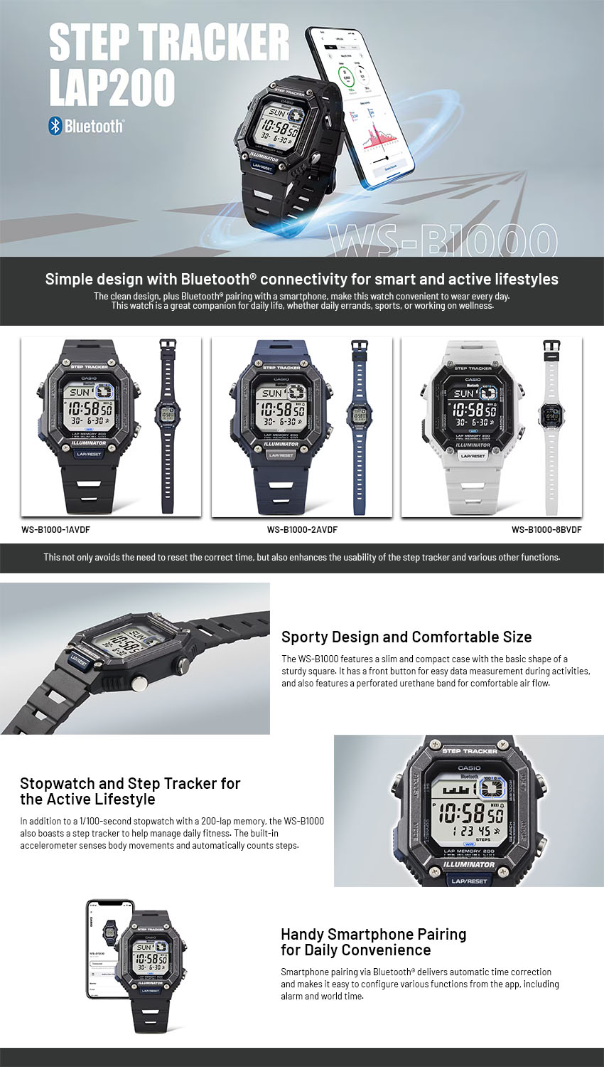Dirancang untuk menunjang aktivitas harian, baik saat olahraga maupun rutinitas, Casio WS-B1000-2AVDF Step Tracker siap jadi partner sehat dan stylish.