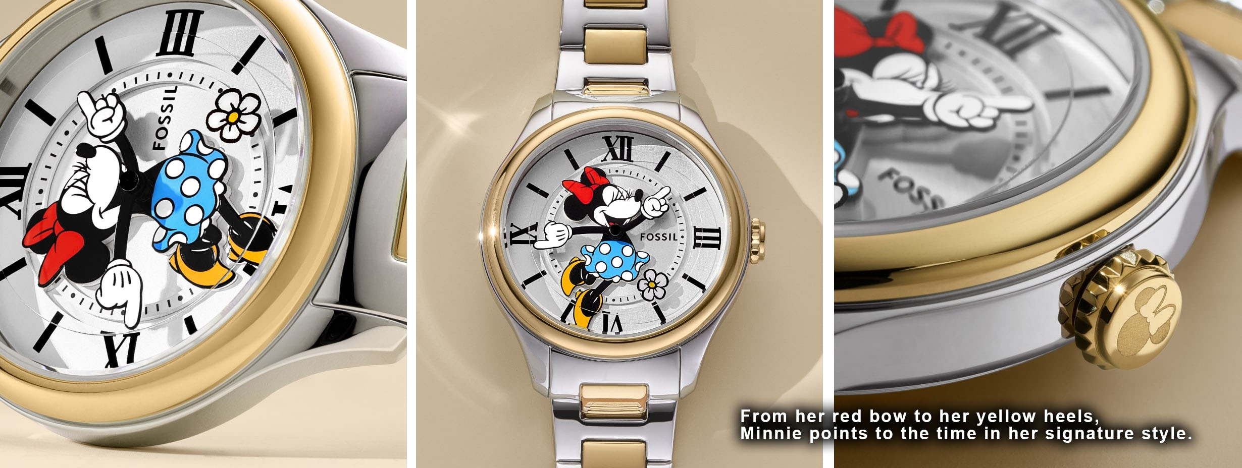 • 1x Fossil X Disney SE1122 Minnie Mouse Silver Dial Dual Tone Stainless Steel Strap Special Edition