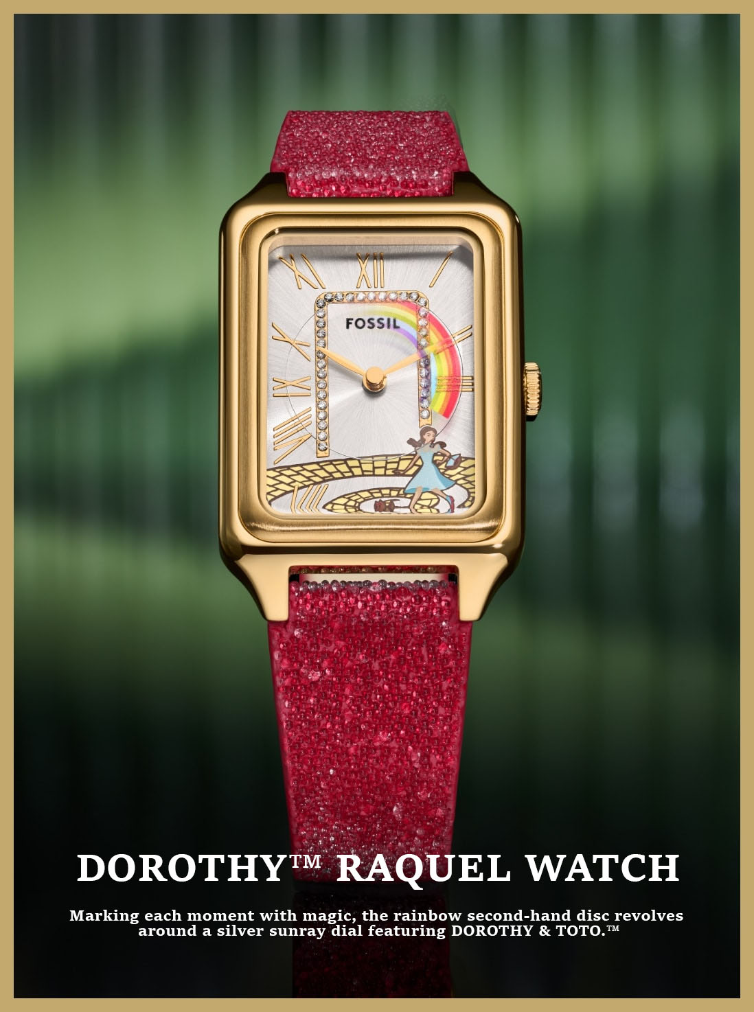 Kenakan jejak magis Dorothy di pergelangan tangan bersama Fossil X The Wizard of Oz LE1200. Menampilkan tema Yellow Brick Road yang penuh harapan.Koleksi  ini adalah perwujudan kisah ikonik yang lembut dan penuh warna setiap detiknya.