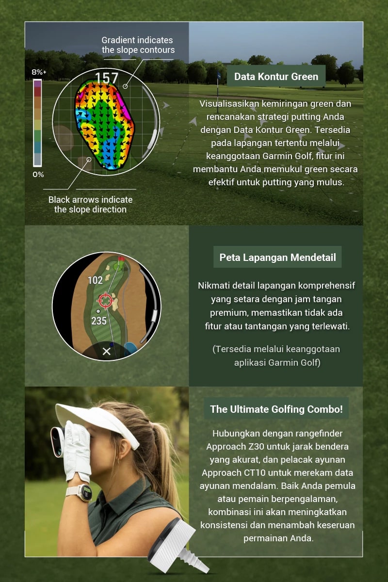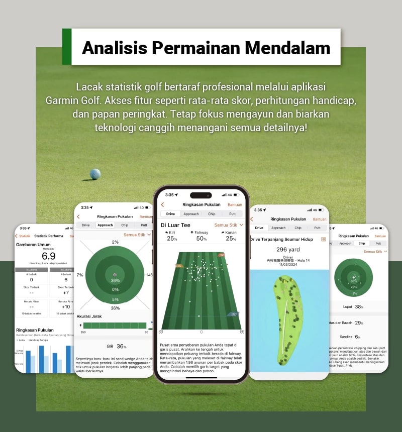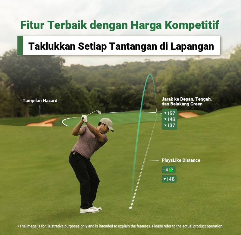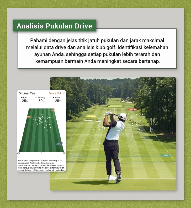 ✅ Sensor GPS bawaan memberikan jarak akurat ke depan, tengah, dan belakang green.