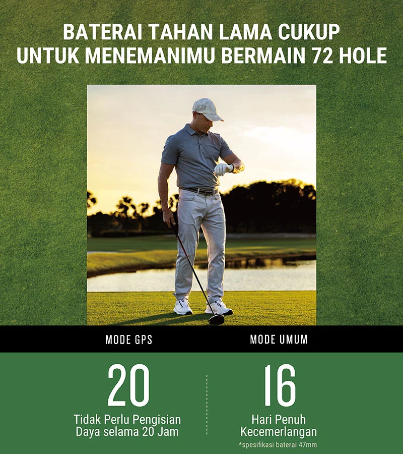 ✅ Baterai tahan hingga 16 hari (mode smartwatch), 20 jam (mode GPS).