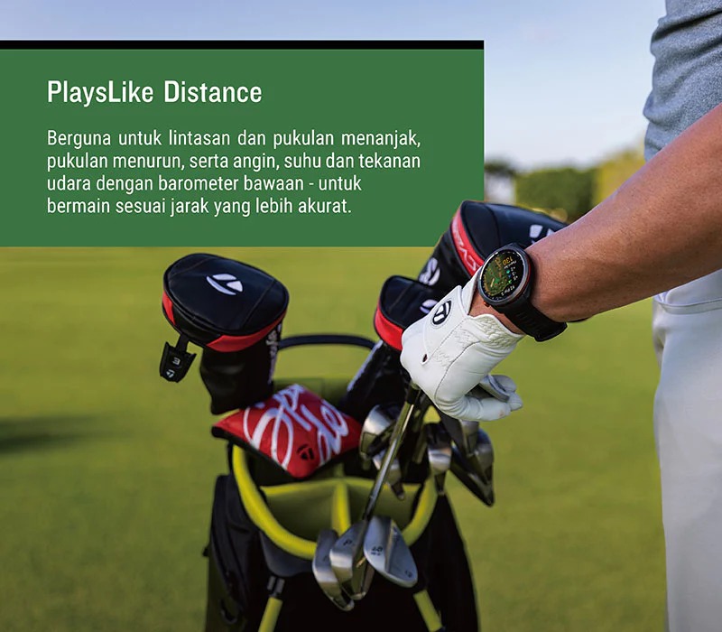 ✅ Fitur PlaysLike Distance bantu perhitungkan elevasi dan kondisi lapangan.