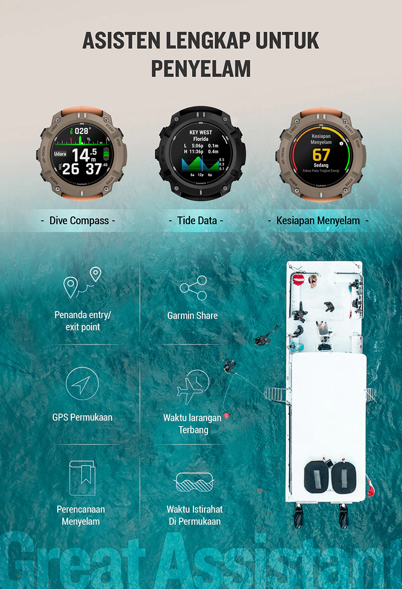 ✅ Bisa digunakan di darat sebagai smartwatch dengan fitur kesehatan & kebugaran lengkap.