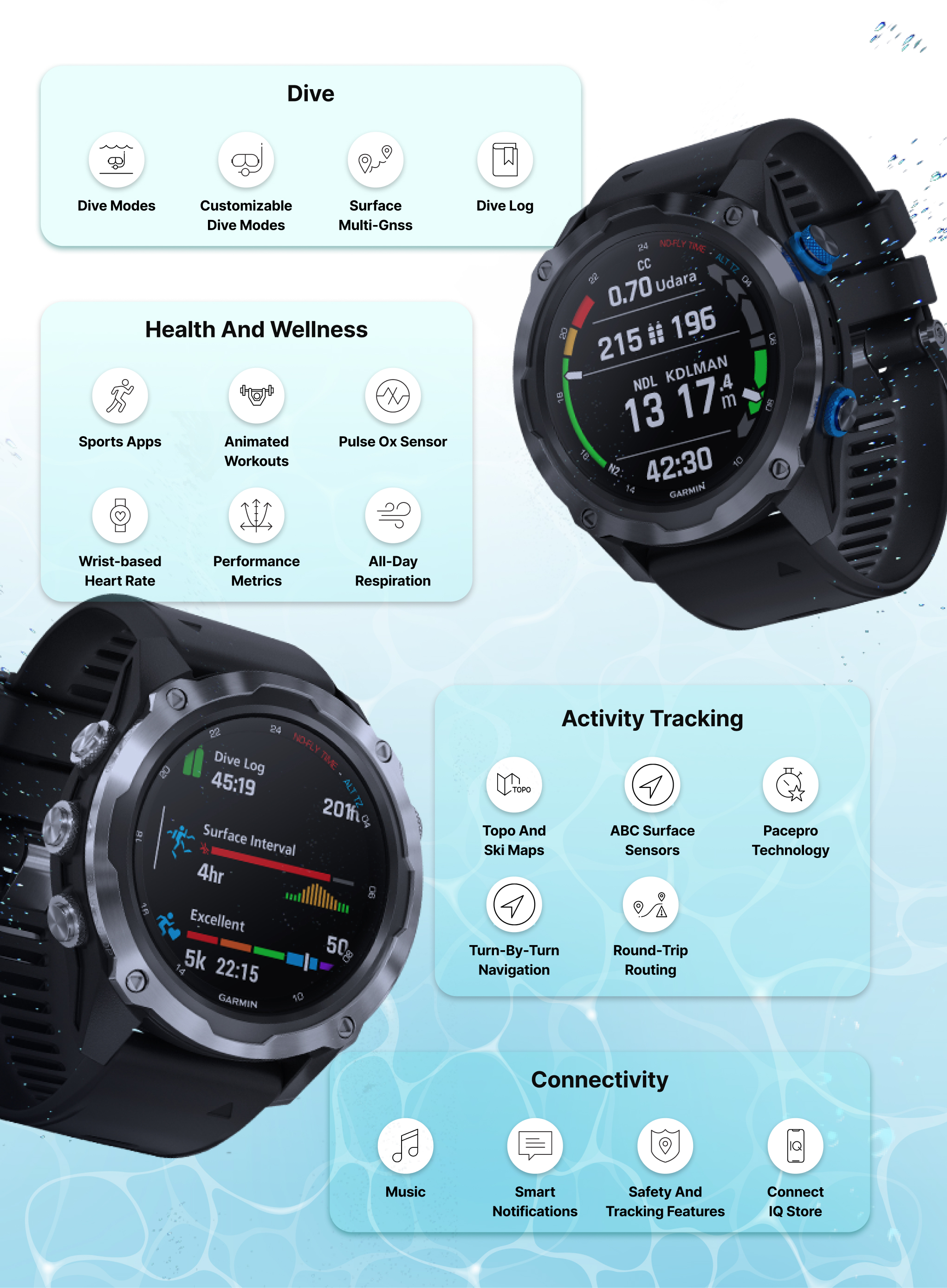 ✅ Simpan dan tinjau riwayat menyelam lewat Garmin Dive App (hingga 200 log).