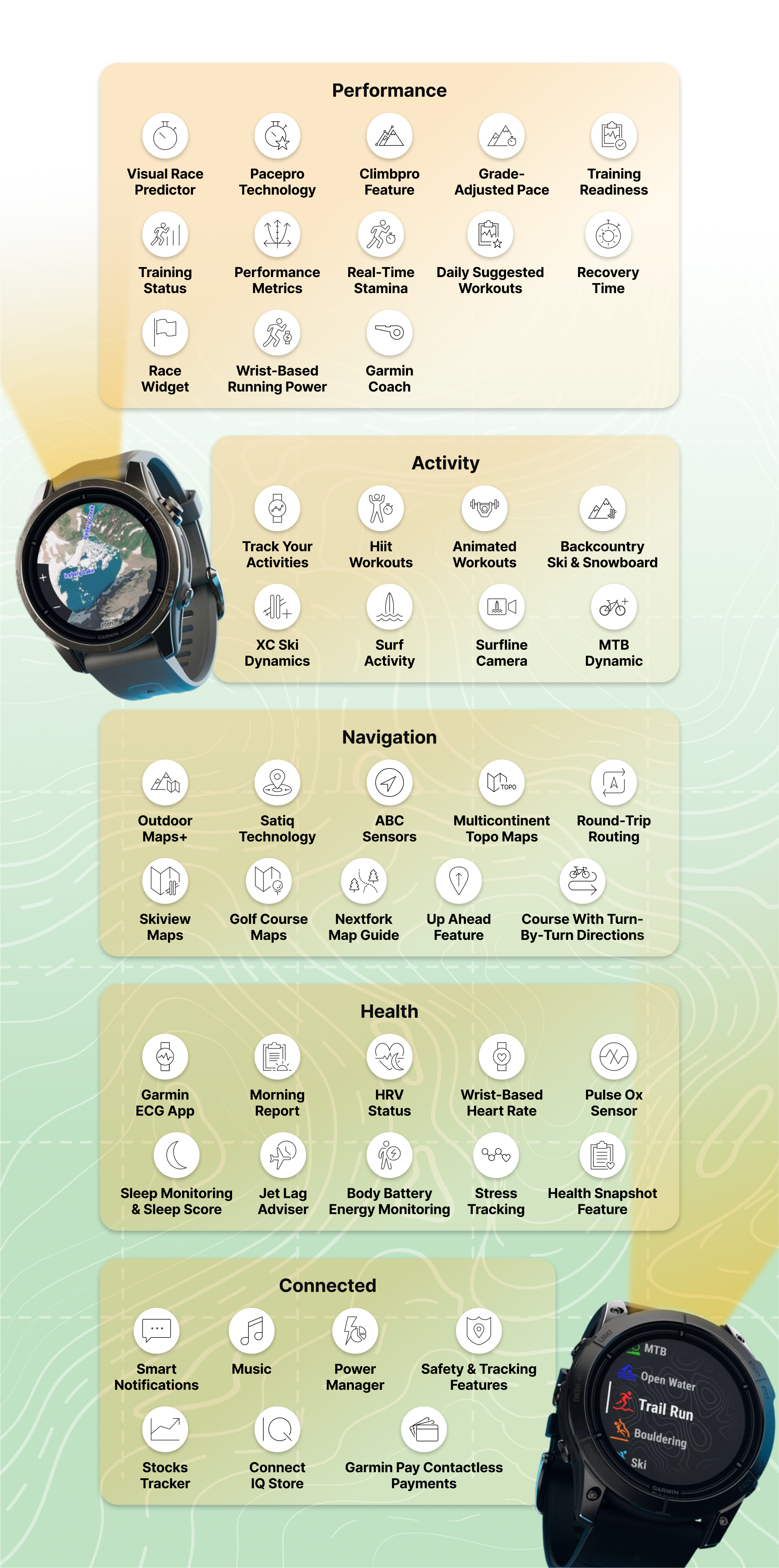 Garmin Epix Pro (42mm) punya banyak fitur menarik, terutama buat kamu yang aktif dan suka teknologi canggih. Ini beberapa poin fitur unggulannya:
