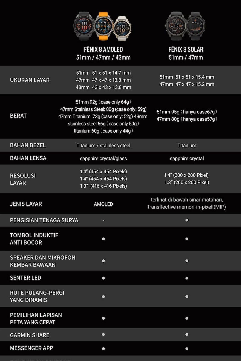 Dirancang untuk keseharian yang aktif dan penuh tantangan. Garmin Fenix 8 43 mm AMOLED menghadirkan kombinasi desain compact, fitur optimal, dan material premium.
