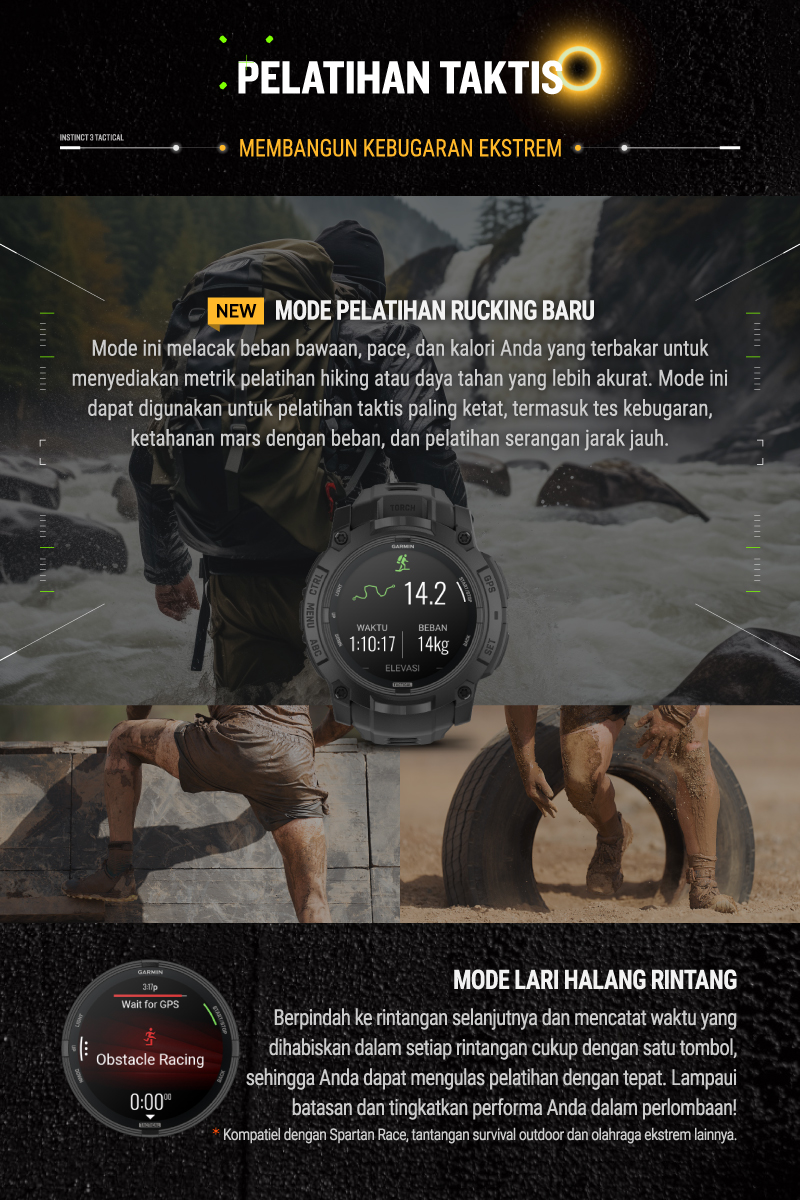 Semua yang dibutuhkan untuk petualangan, ada di Garmin Instinct 3 010-02934-90 Solar Tactical Edition