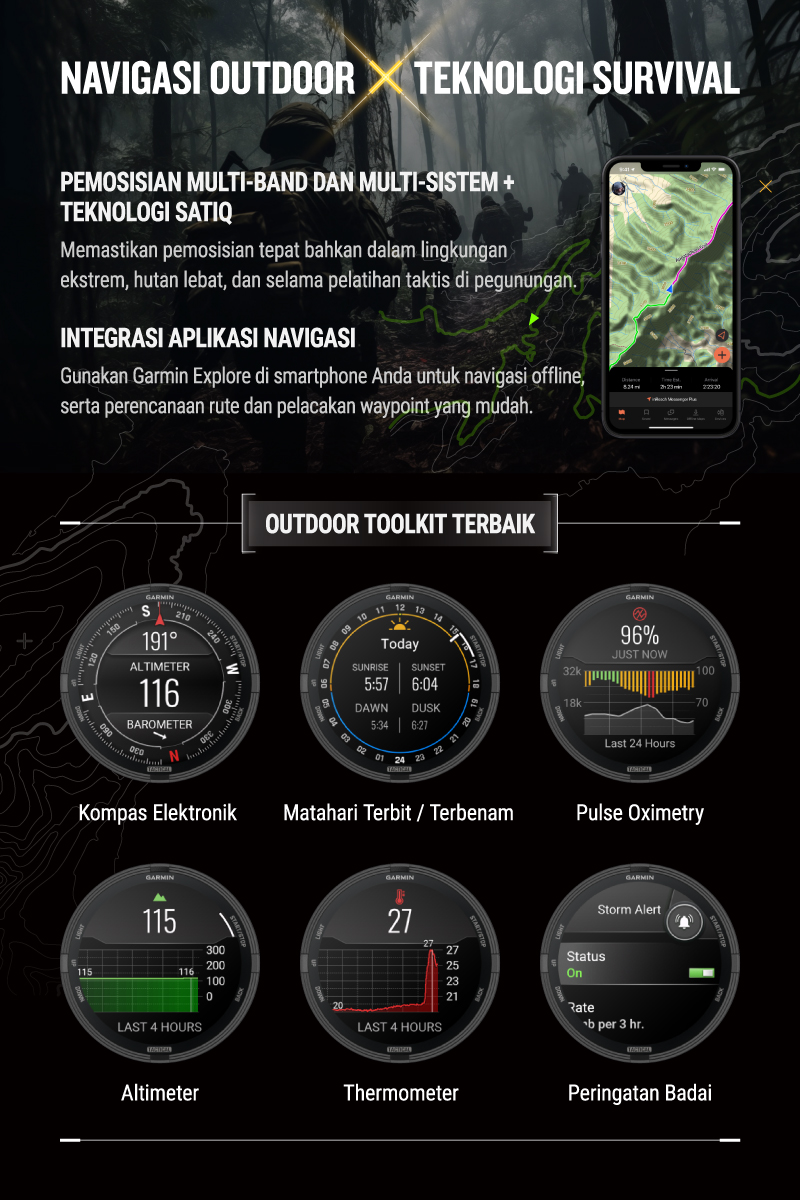 ✅ Sensor ABC (altimeter, barometer, kompas) mendukung orientasi di alam bebas.