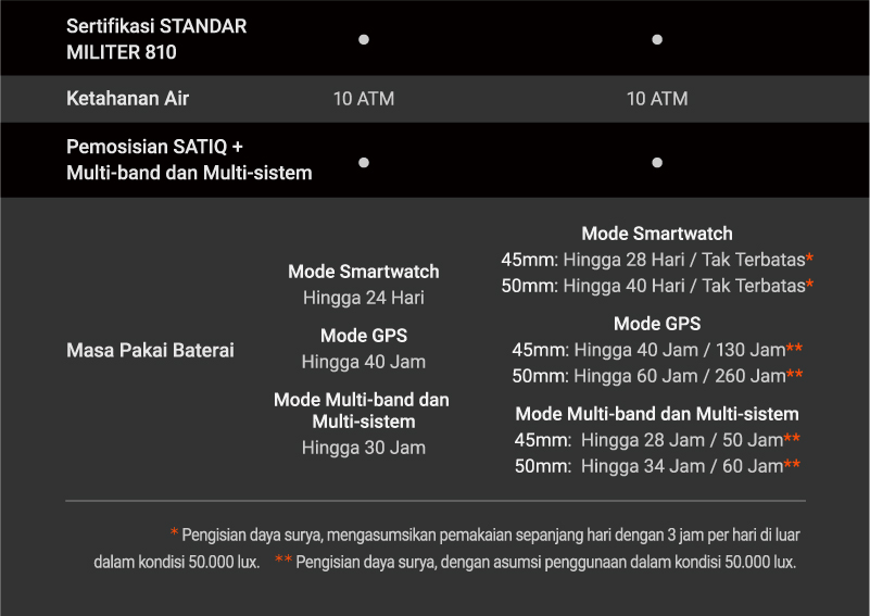 ✅ Tahan air hingga 100 meter dan bersertifikasi MIL-STD-810 untuk ketahanan ekstrem.