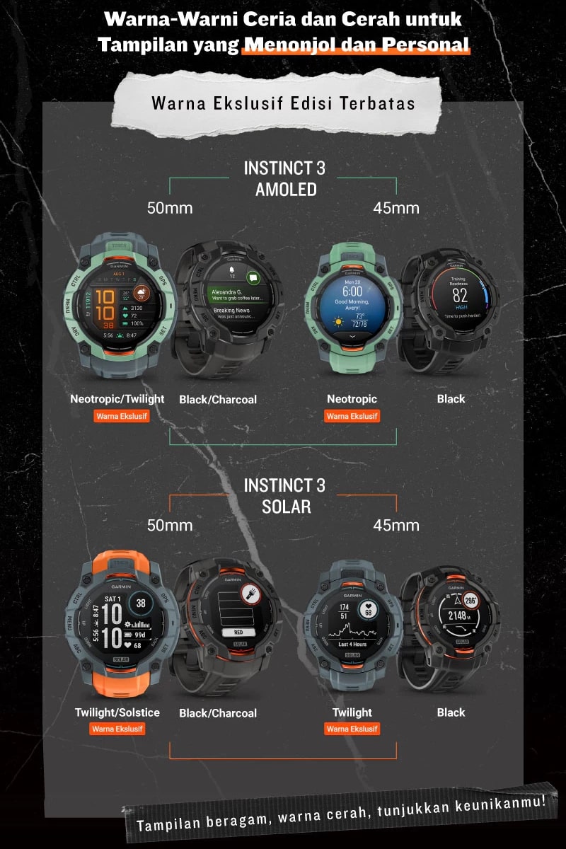 Siap hadapi tantangan alam dan bergaya di keseharian bersama Garmin Instinct 3 010-02936-40 . Check out sekarang, harga terbaik hanya di Jamtangan.com!