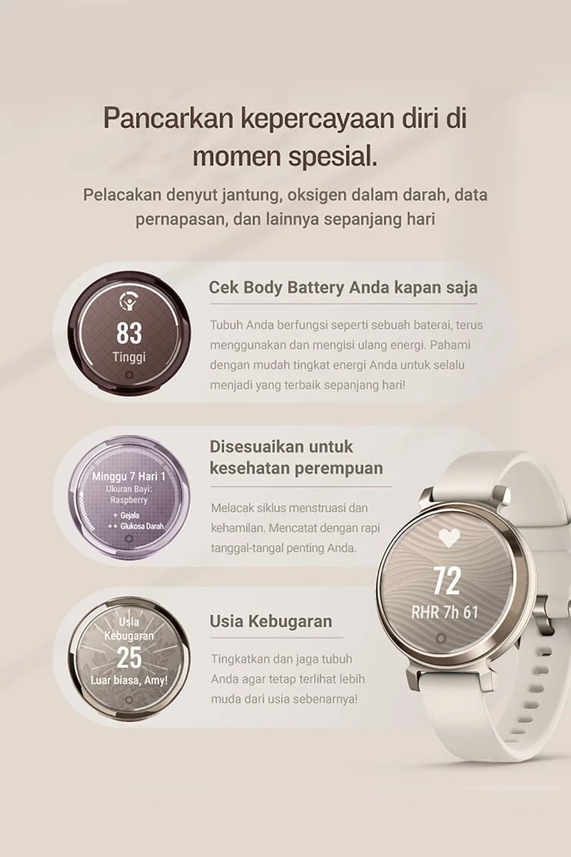 ✅ Memiliki fitur pelacakan kesehatan lengkap seperti detak jantung, stres, tidur, dan kadar oksigen darah.
