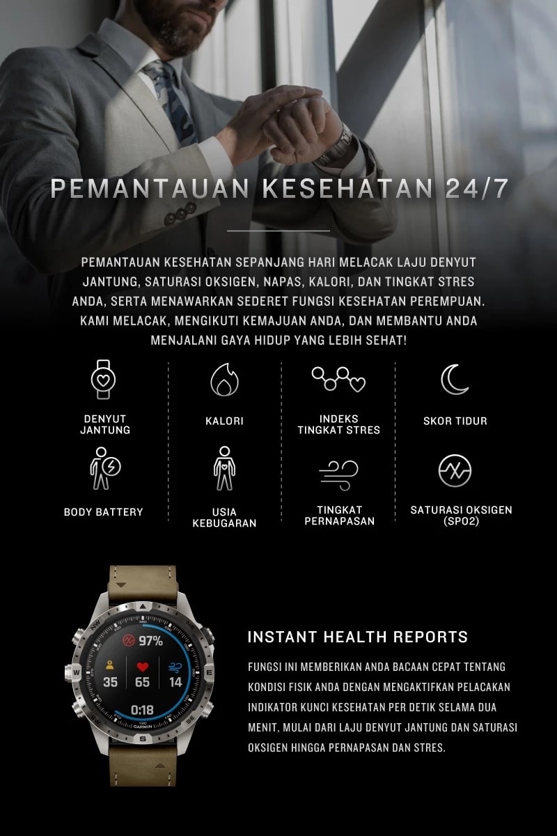 Garmin MARQ Adventurer Gen 2 adalah perpaduan sempurna antara kemewahan dan ketangguhan. Dengan material premium dan fitur navigasi canggih, koleksi ini menemani setiap langkah petualangan.