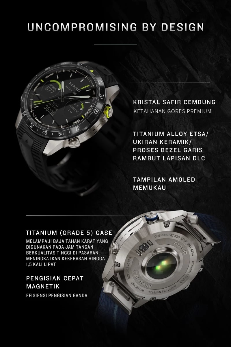 ✅ Material premium siap diandalkan: titanium Grade-5 dengan bezel keramik dan lensa safir.