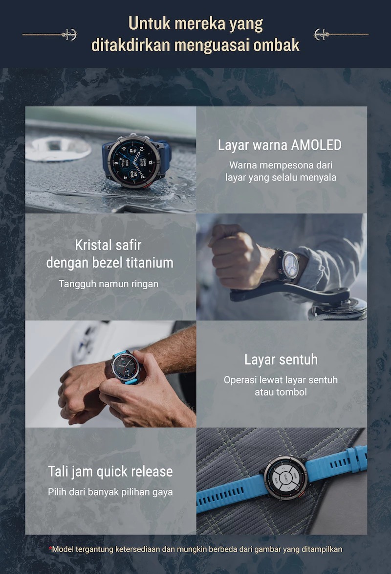 ✅ Desain Tangguh dan Stylish dengan layar AMOLED cerah dan lensa safir anti gores.