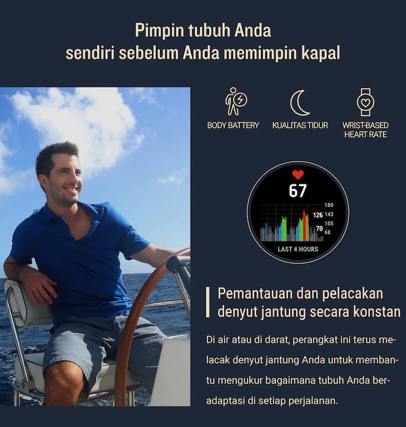 ✅ Fitur Olahraga Lengkap yang mencakup metrik pelatihan lanjutan dan pemantauan denyut jantung.